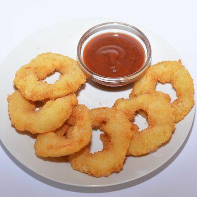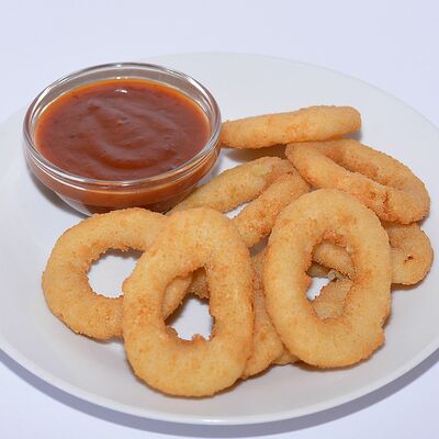 Лук, панировочные сухари, соус барбекю