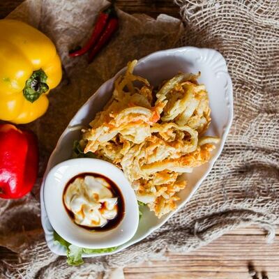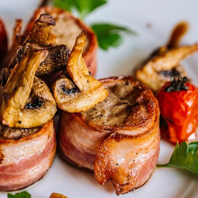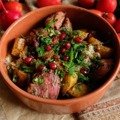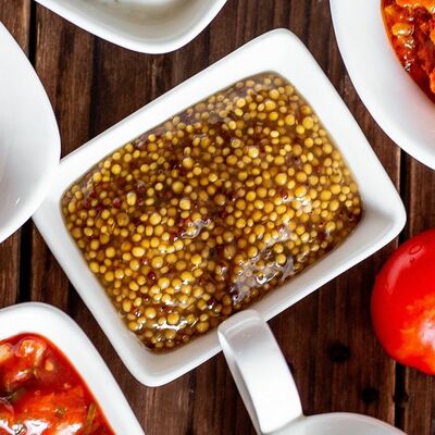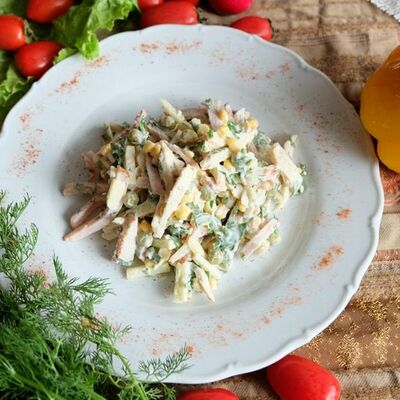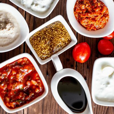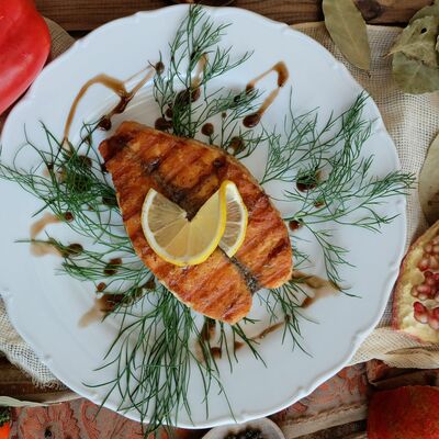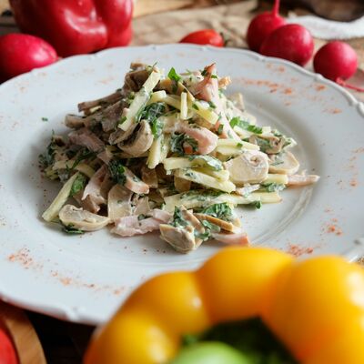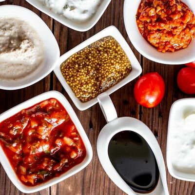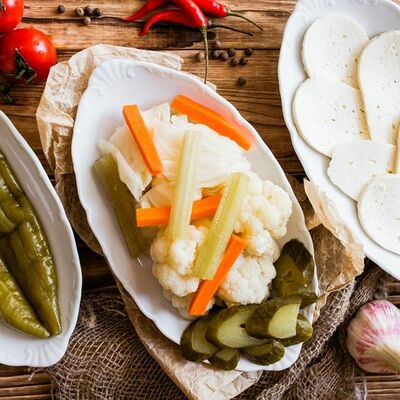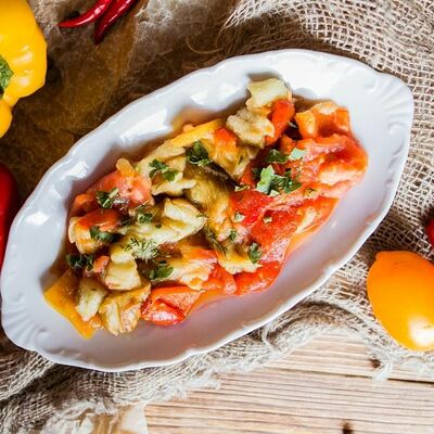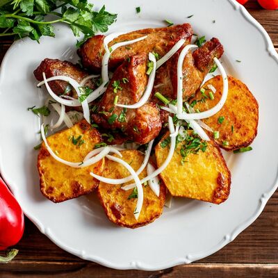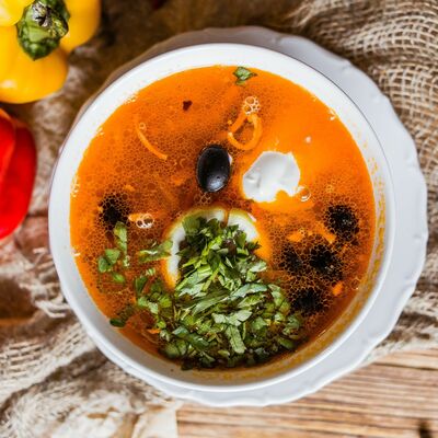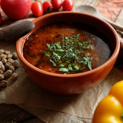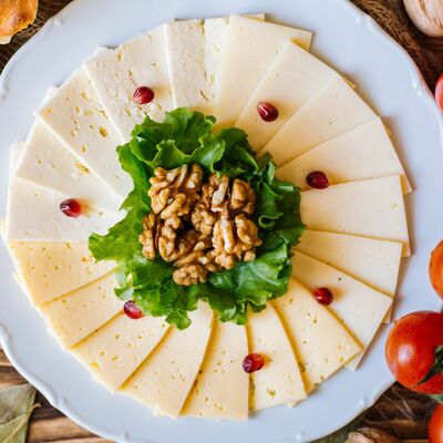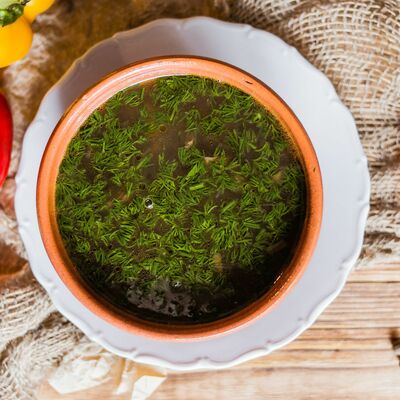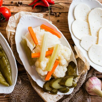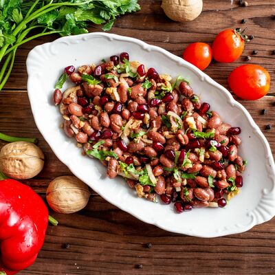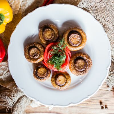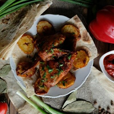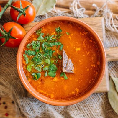 Винoградный лист, фарш из говядины и свинины с рисом, соус мацун с чесноком