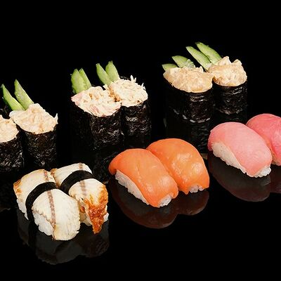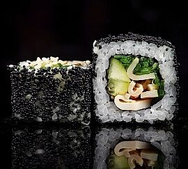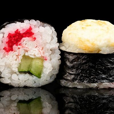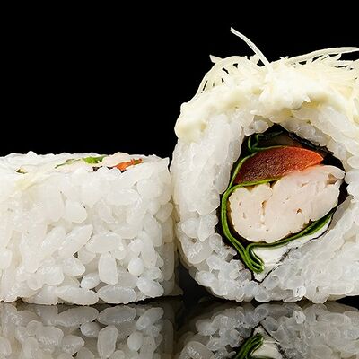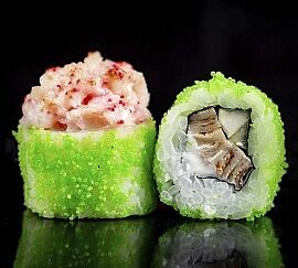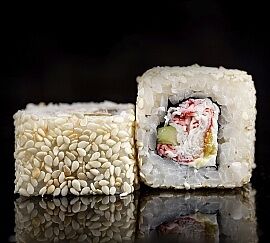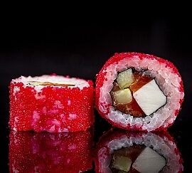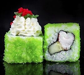 Рис, снежный краб, огурец, икра Масаго, сыр творожный
