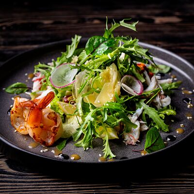 Амурский салат с семгой и кедровым орехом доставка
