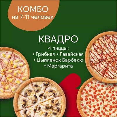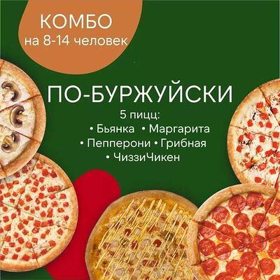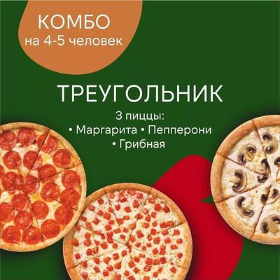 Комбо на 4-5 человек. Маргарита, пепперони и грибная