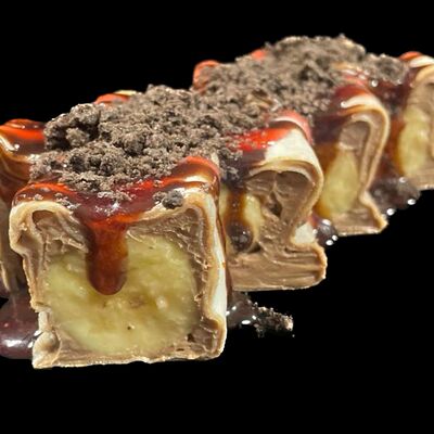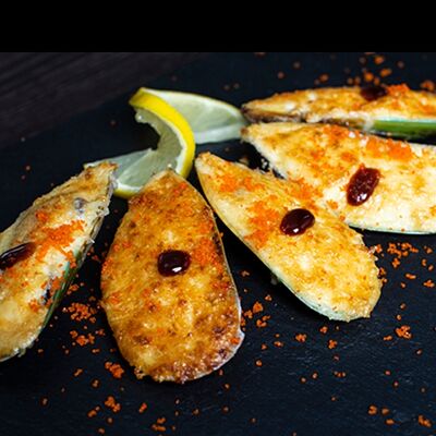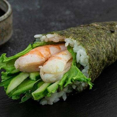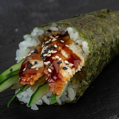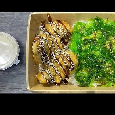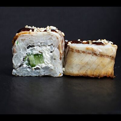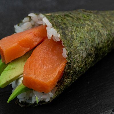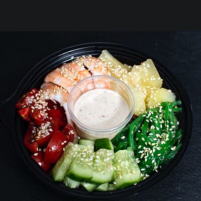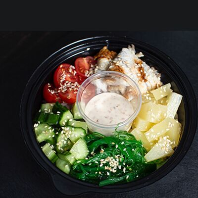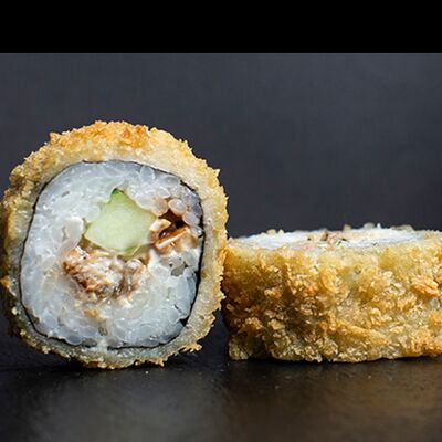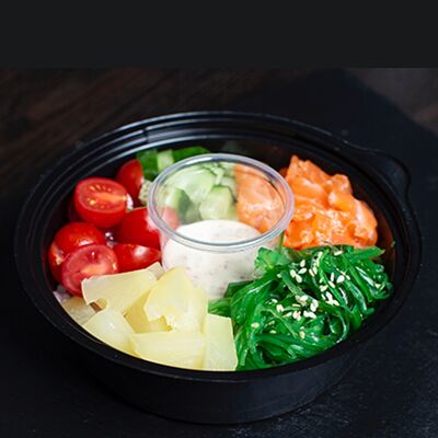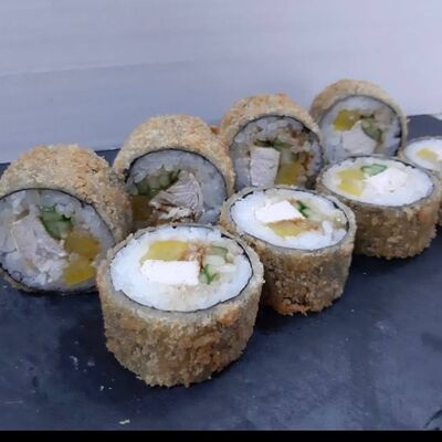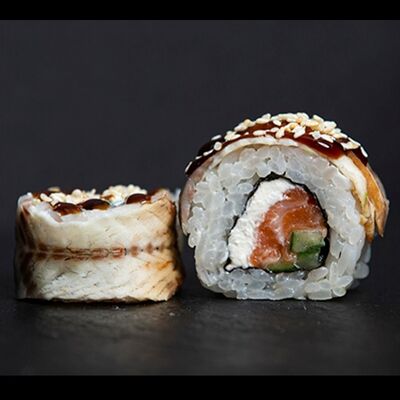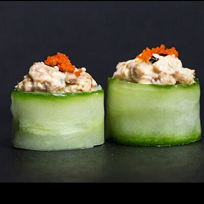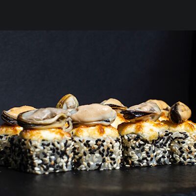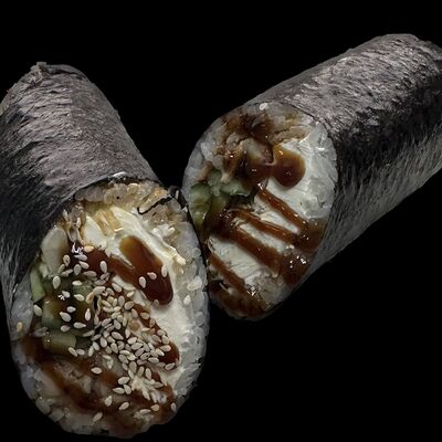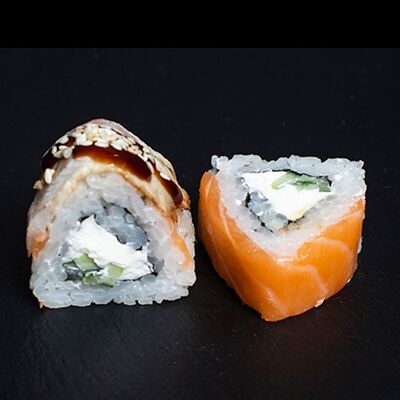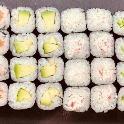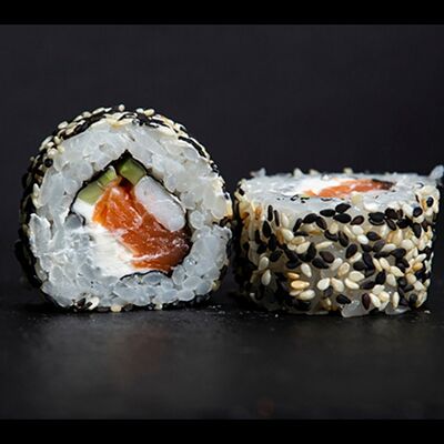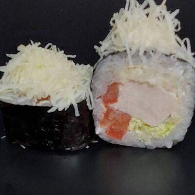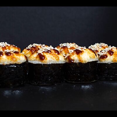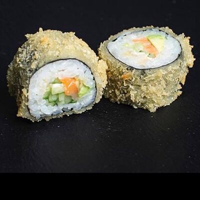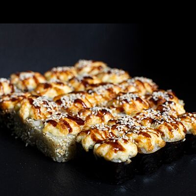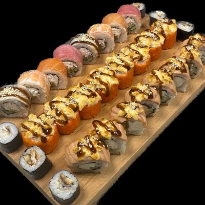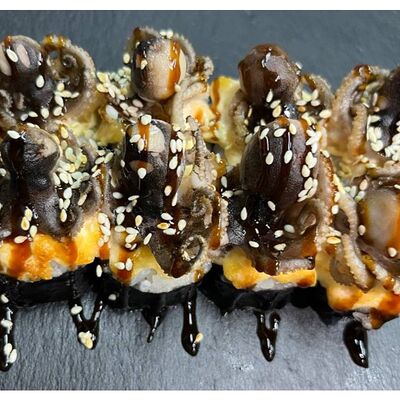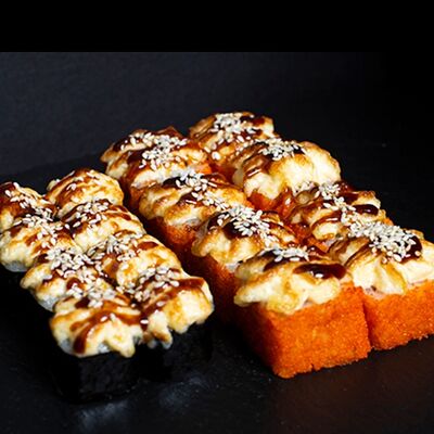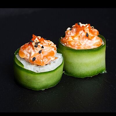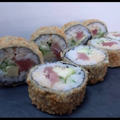 Авокадо, лосось, краб-микс, икра тобико, соус спайси