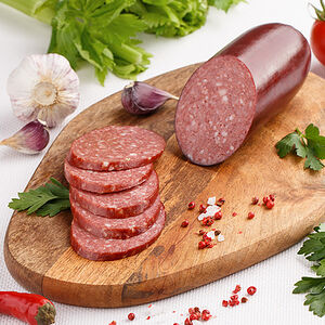 Правильная Московская полукопченая колбаса должна состоять из трех частей отборной говядины и одной части свиного шпика, черный перец и обязательно мускатный орех - именно такая Московская колбаса изготавливается ТМ "У Палыча". Изготавливается по рецептуре ГОСТа, относится к категории А.