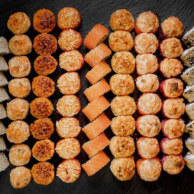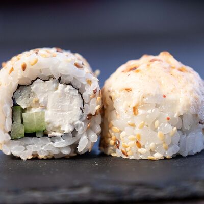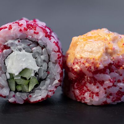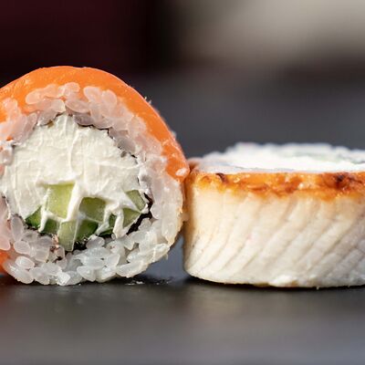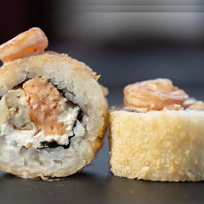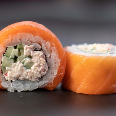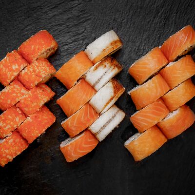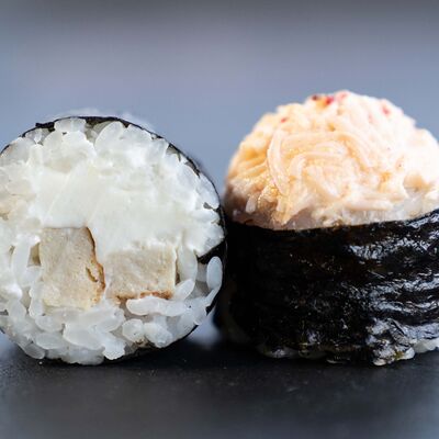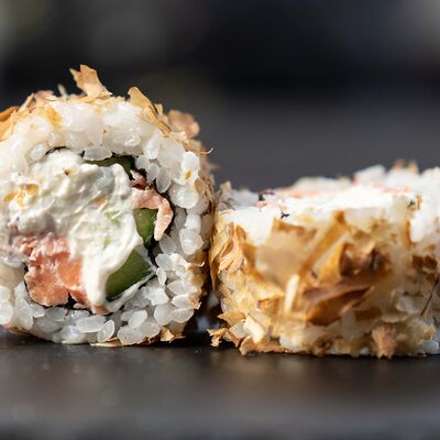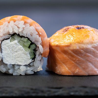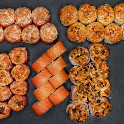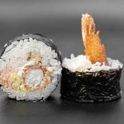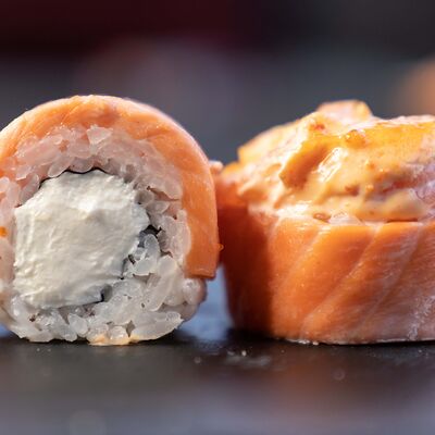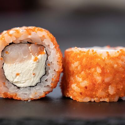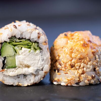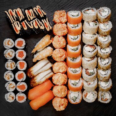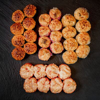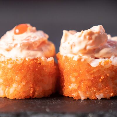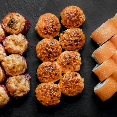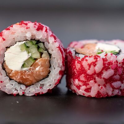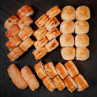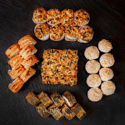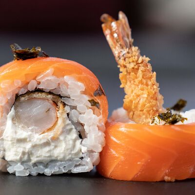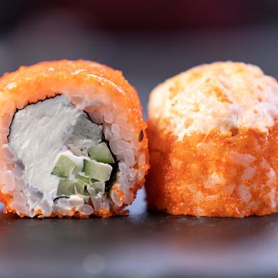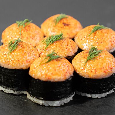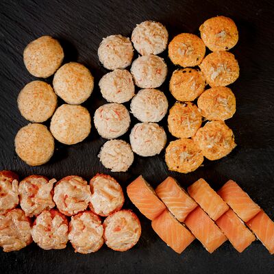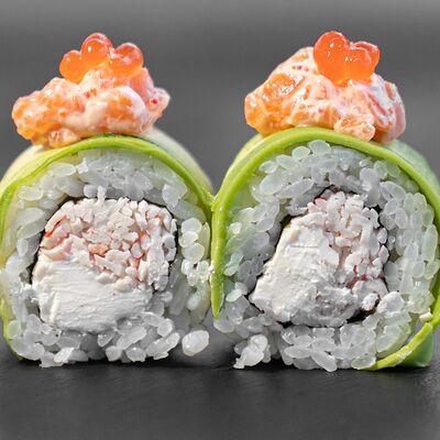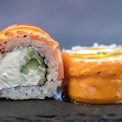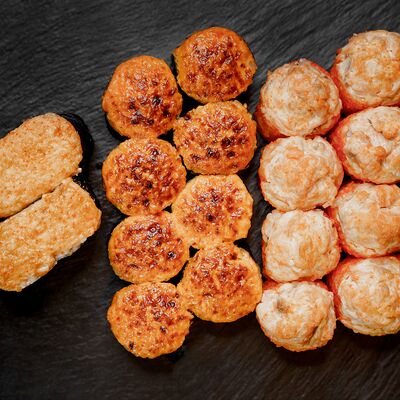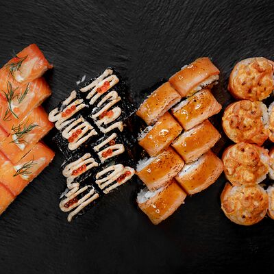 Сливочный сыр, лосось, омлет, креветка, сливочный соус, 5 шт