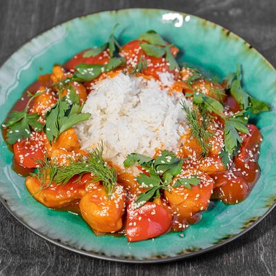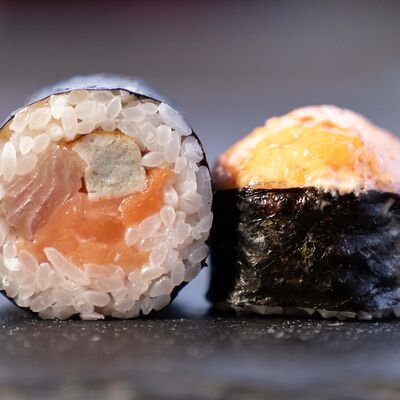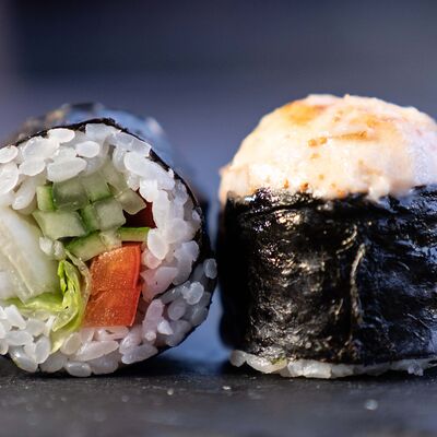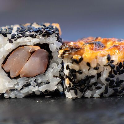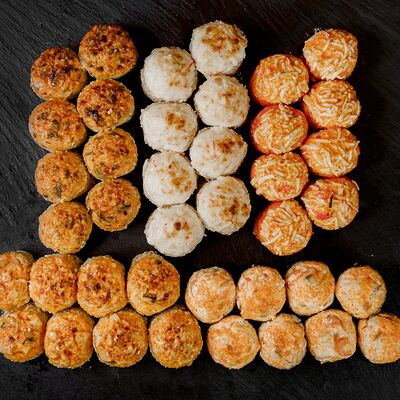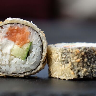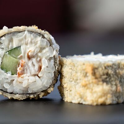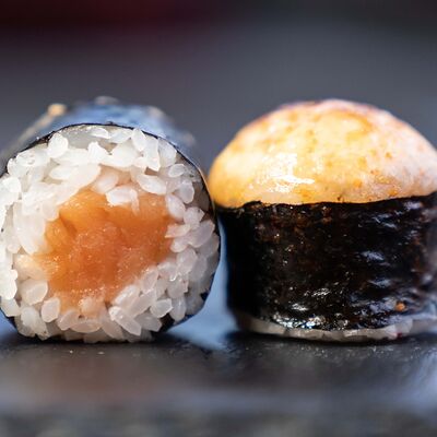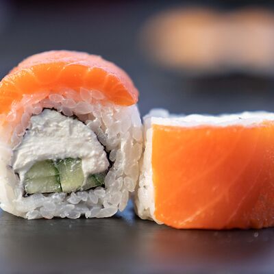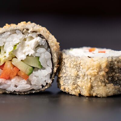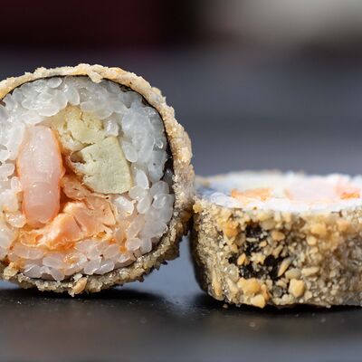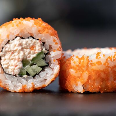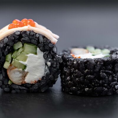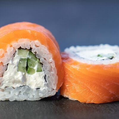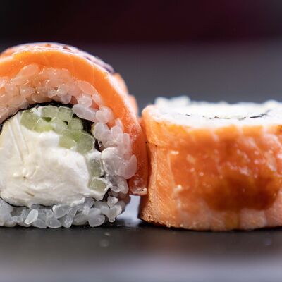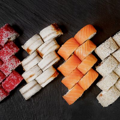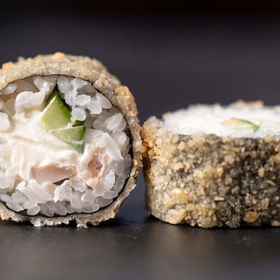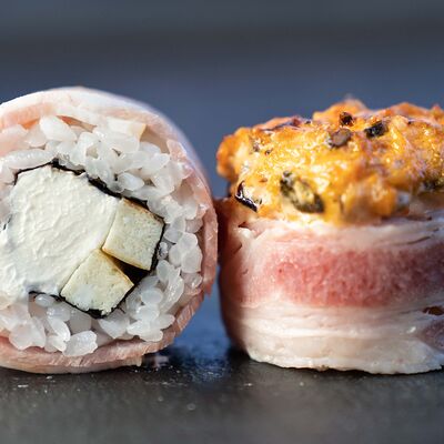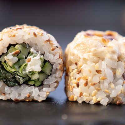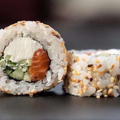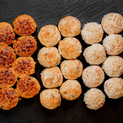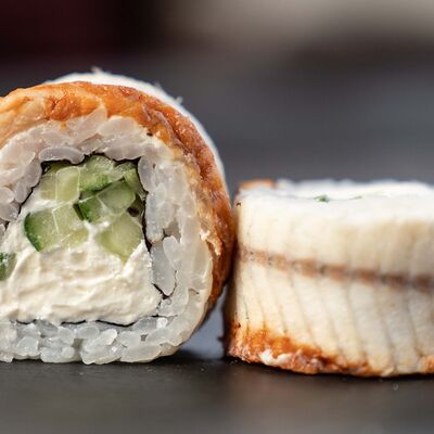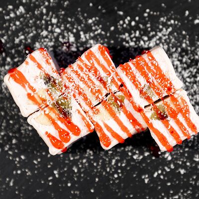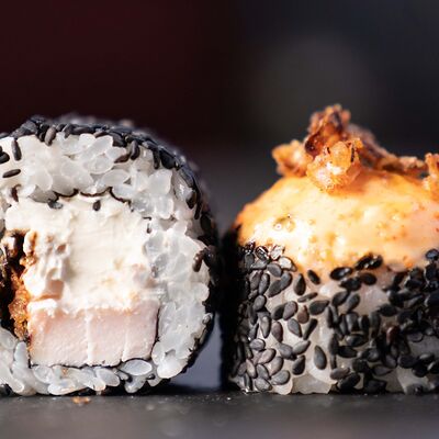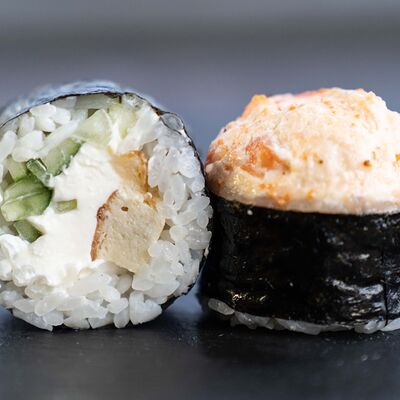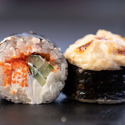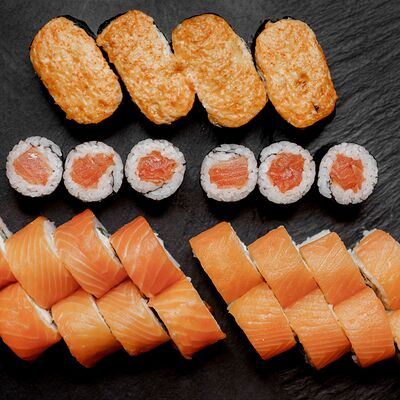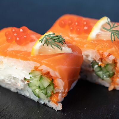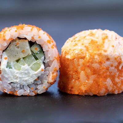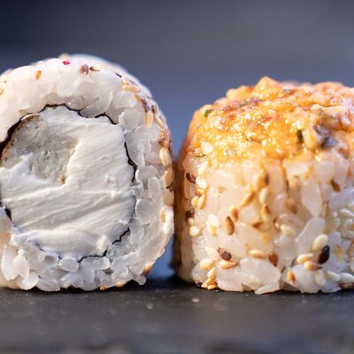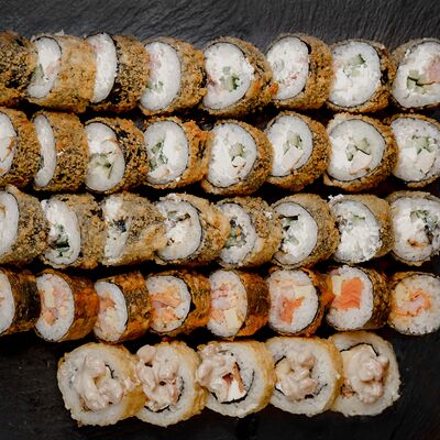 Сливочный сыр, лосось, омлет, креветка, сливочный соус, 5 шт