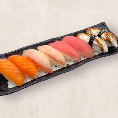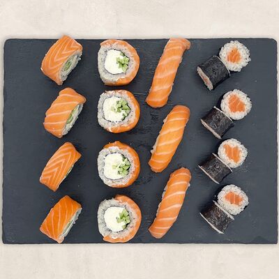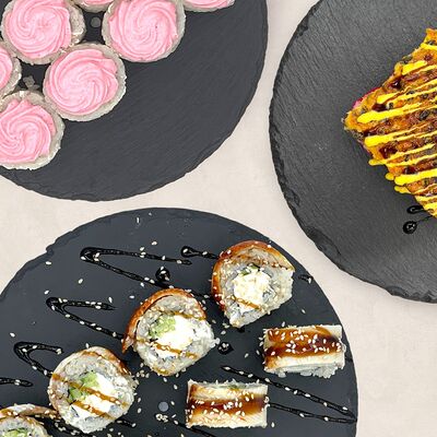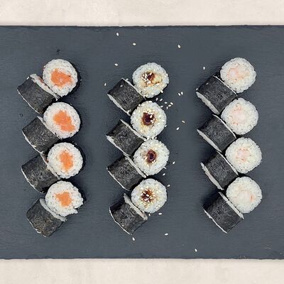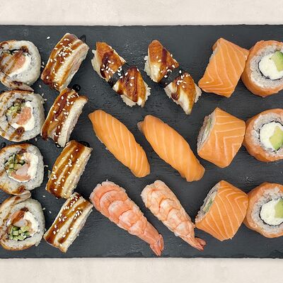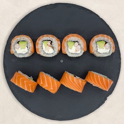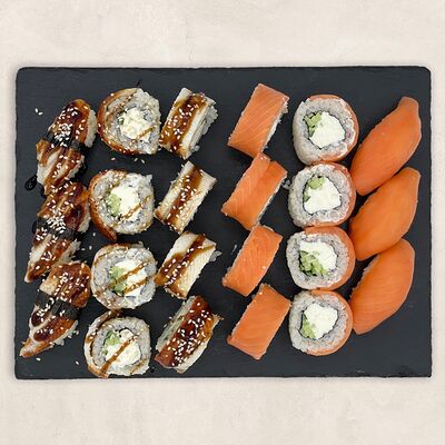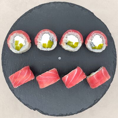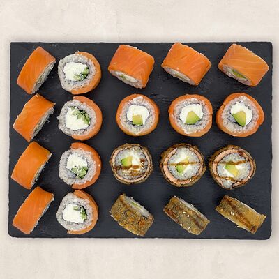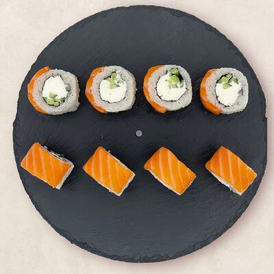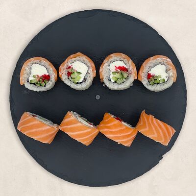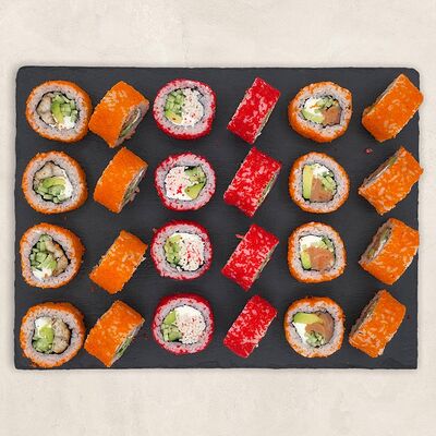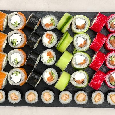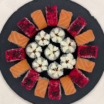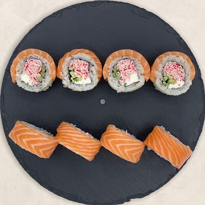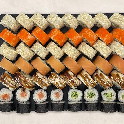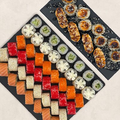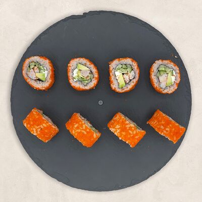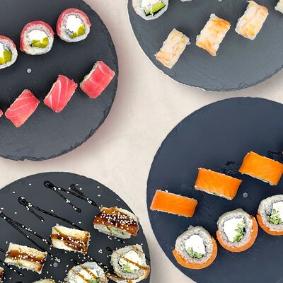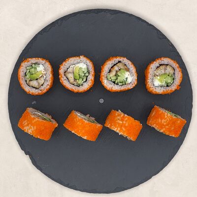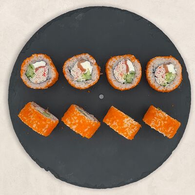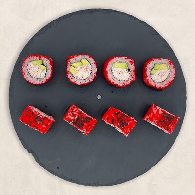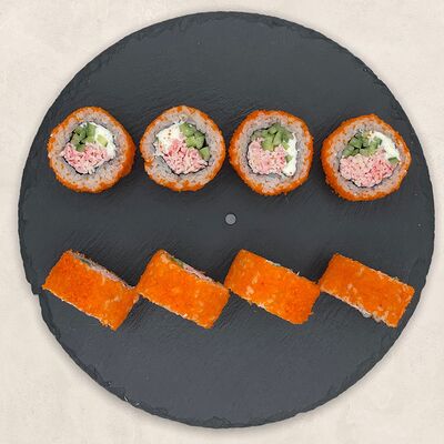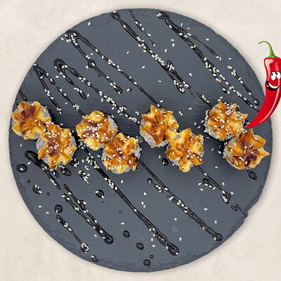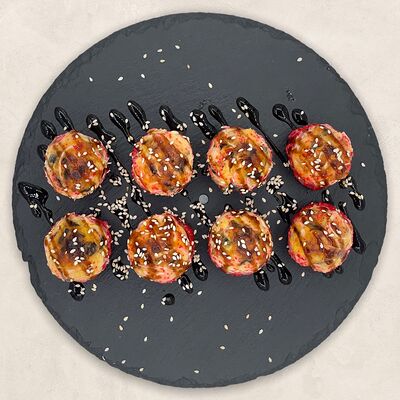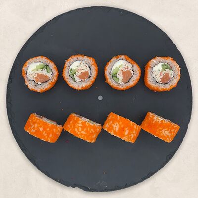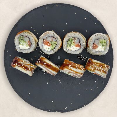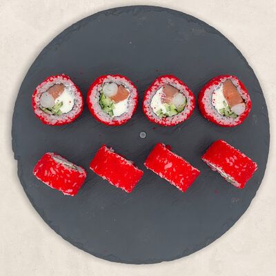 Запеченный ролл с мидиями, Запеченный ролл с окунем, Ролл Спайси, Запеченный мини с омлетом, запеченные суши с крабом (4 шт.)