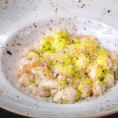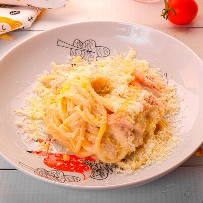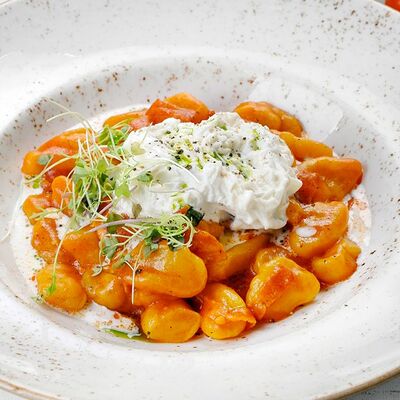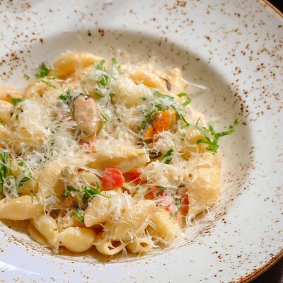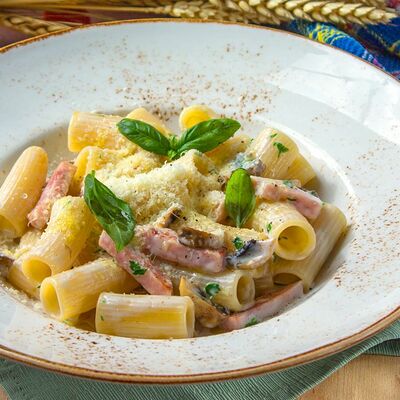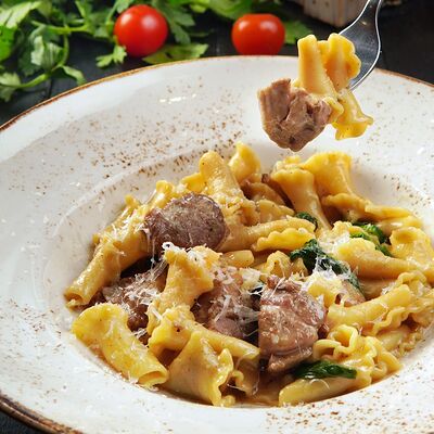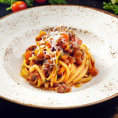 Сытная паста на томатной основе с нежным ягненком, морковью, луком и сельдереем. Подается с пармезаном
