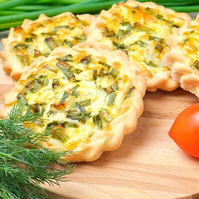 Тесто песочное, заливка яичная, фарш из ветчины и сыра