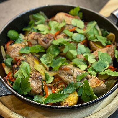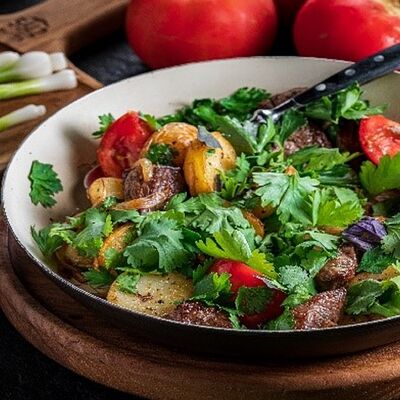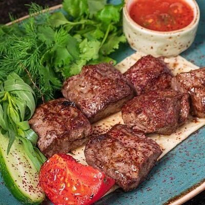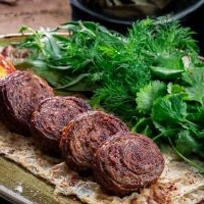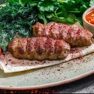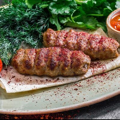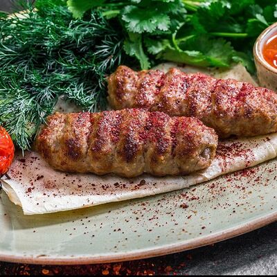 Рубленое мясо ягненка (халяль), лук, соль, перец и курдюк, в форме колбасок, обжаривается на мангале, подается на блюде с веточками свежей зелени на армянском тонком лаваше с запечённым на углях томатом и свежим огурцом. Подается с соусом сацебели. Посыпается сумахом