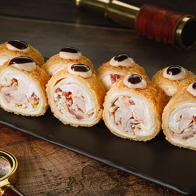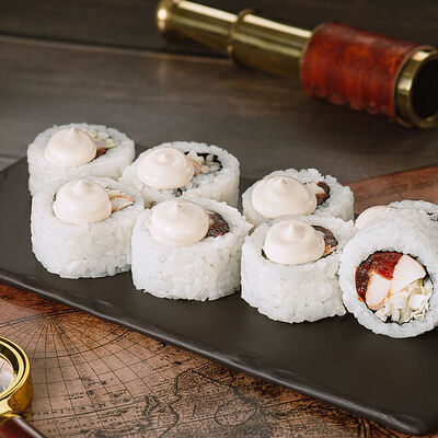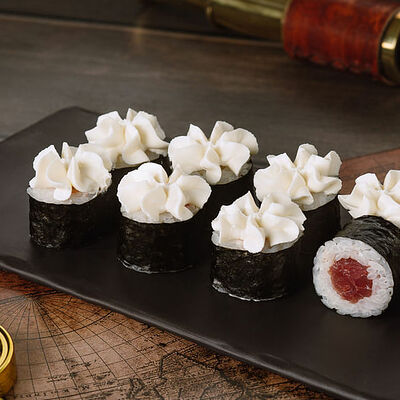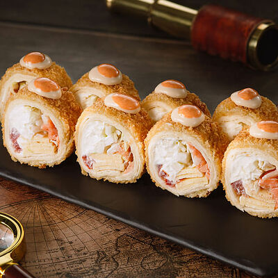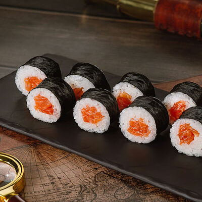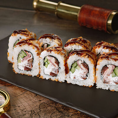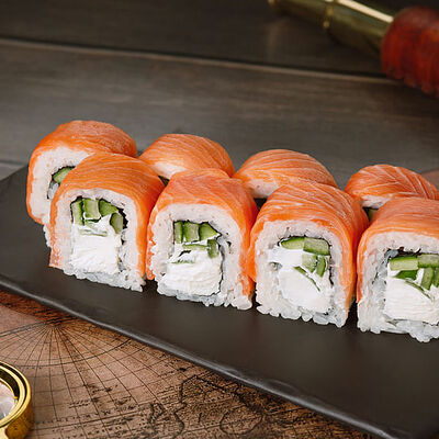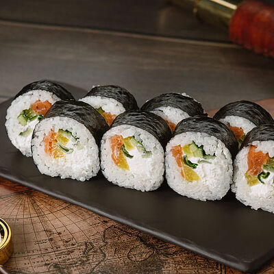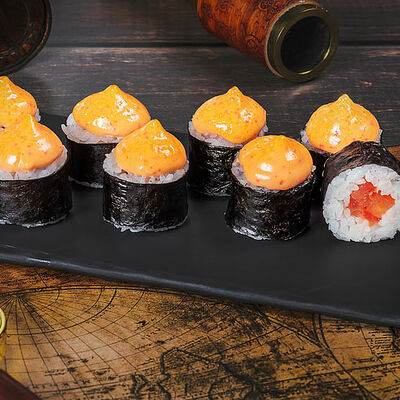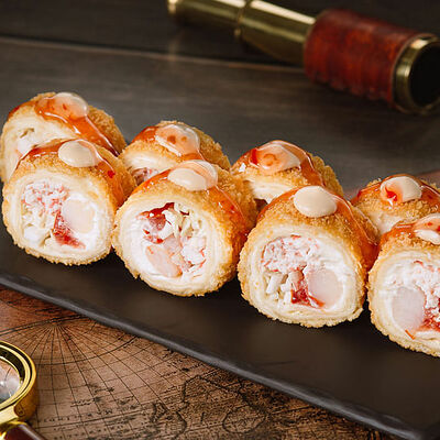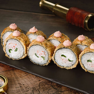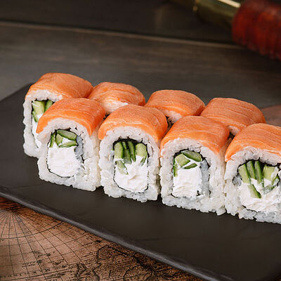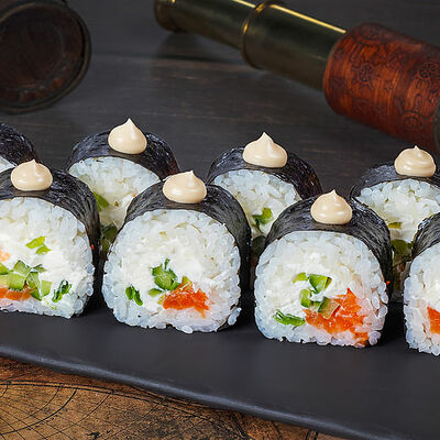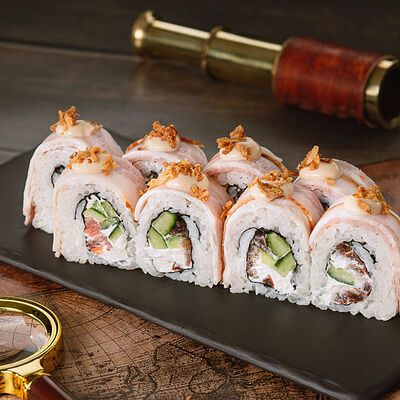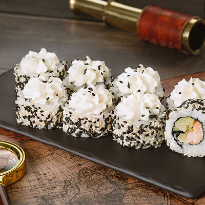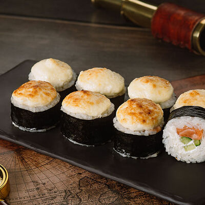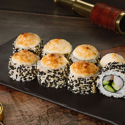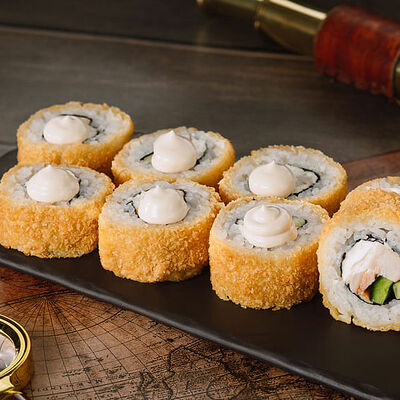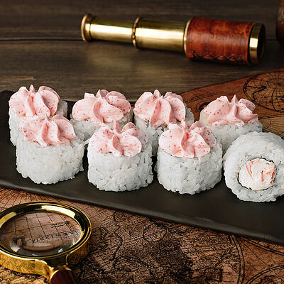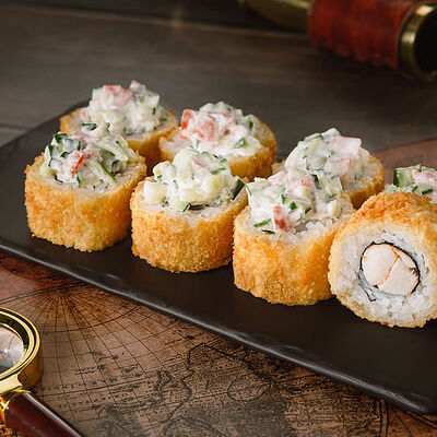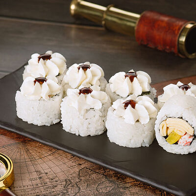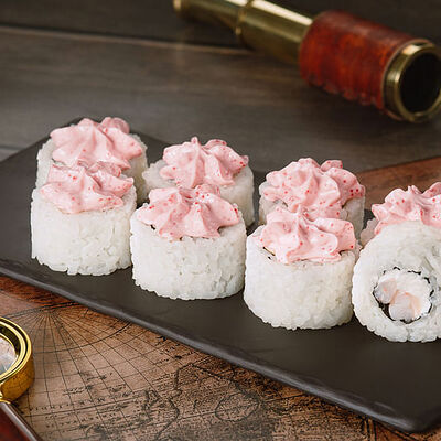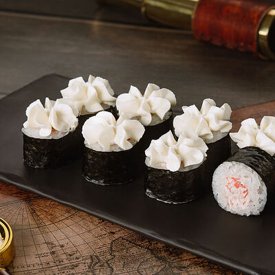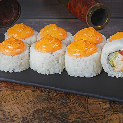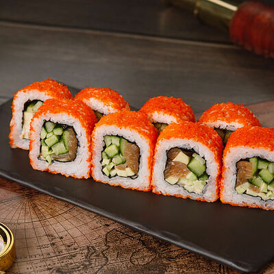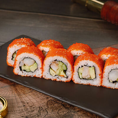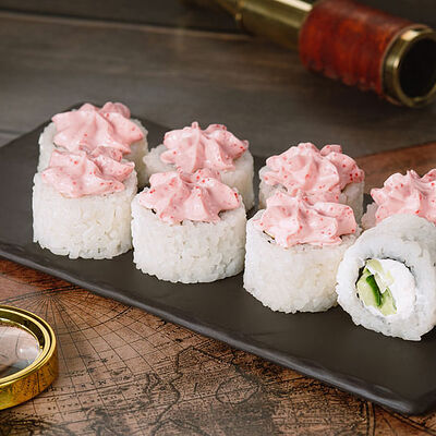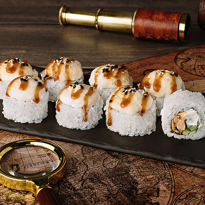 Фудзияма с крабом 8шт, Филадельфия Лайт 8шт, Кентукки 8шт, Монтана 8шт, Мексиканская цыпа 8шт, Курочка из Сакурасо 8шт. Не забудьте заказать имбирь, васаби и соевый соус. Они не входят в стоимость заказа