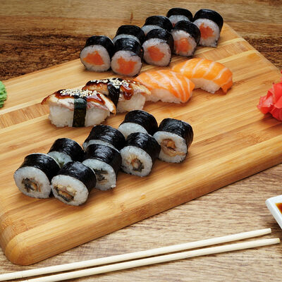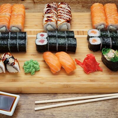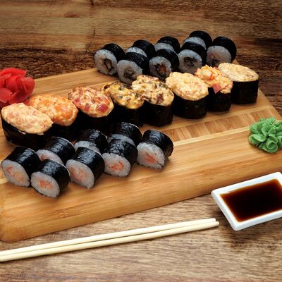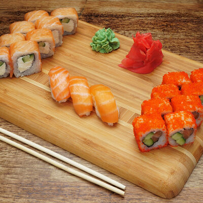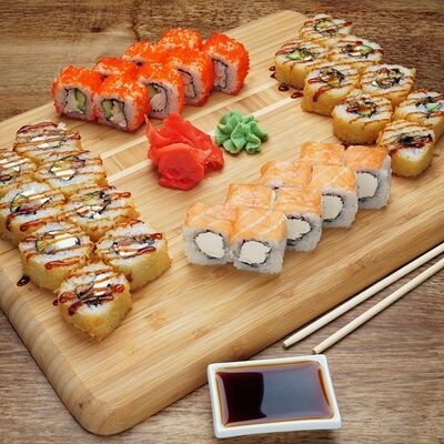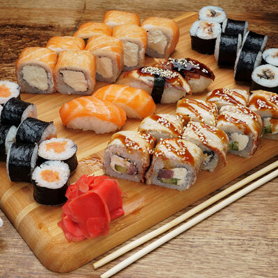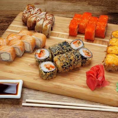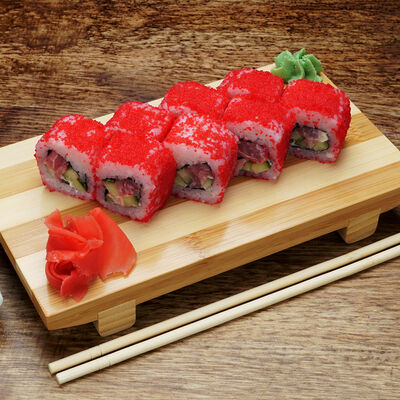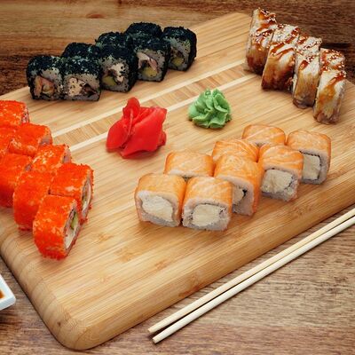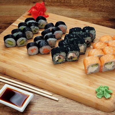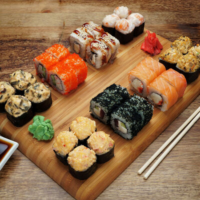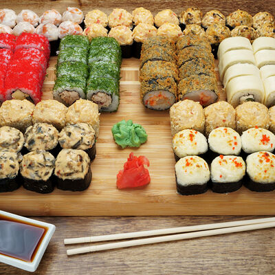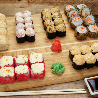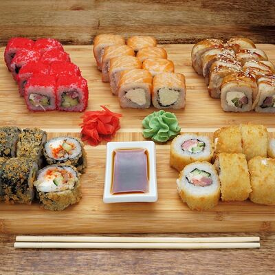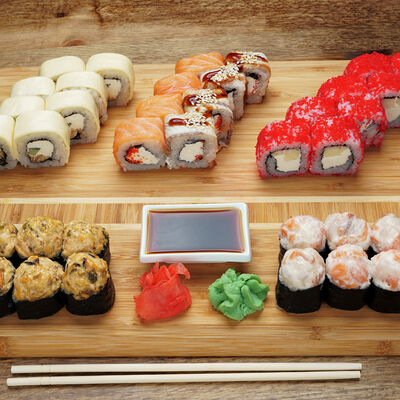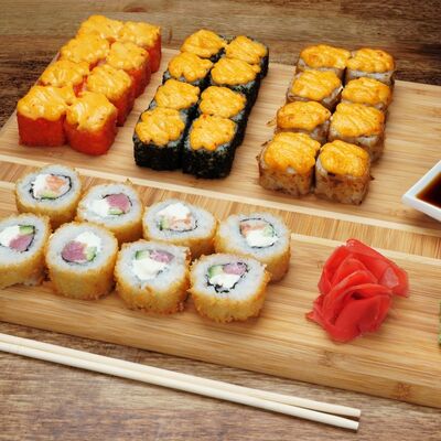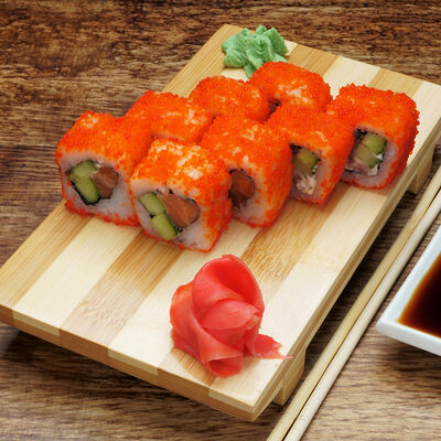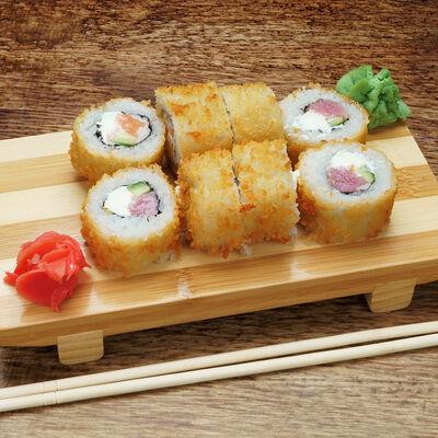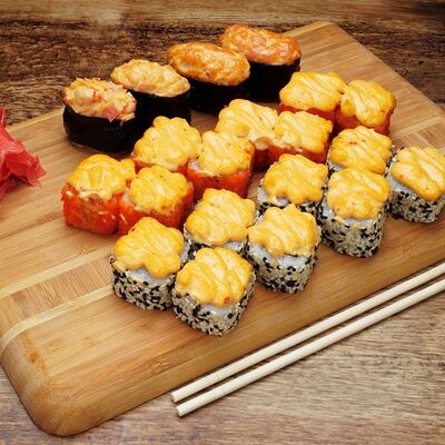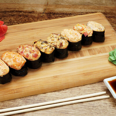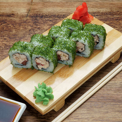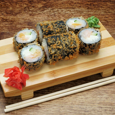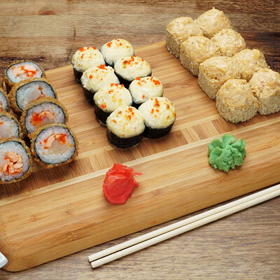 Рис, сливочный сыр, помидор, лист салата, огурец, курица, кунжут