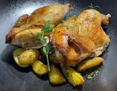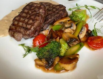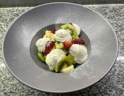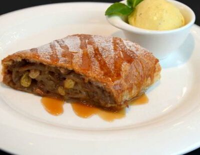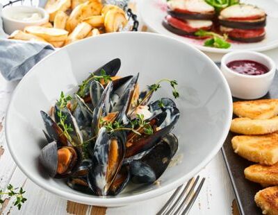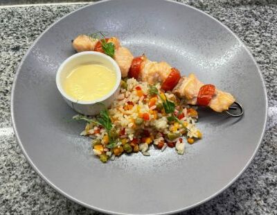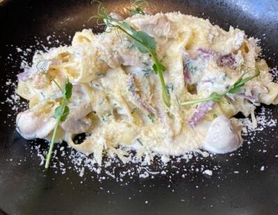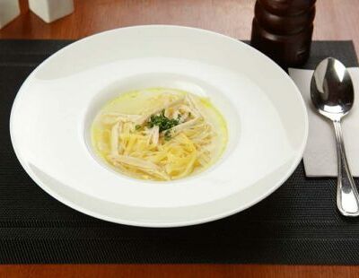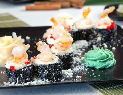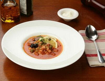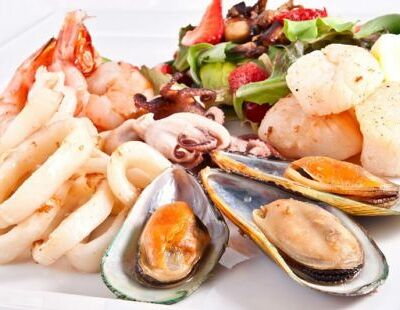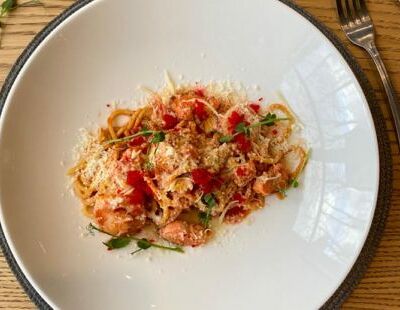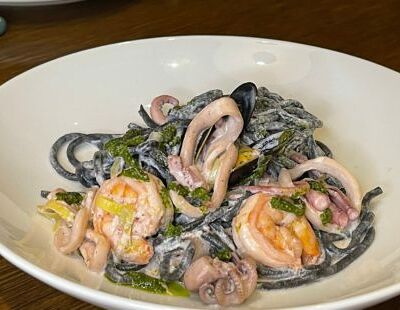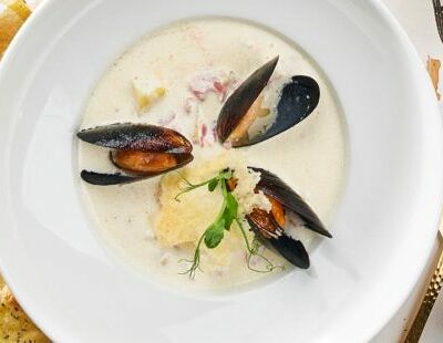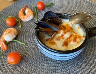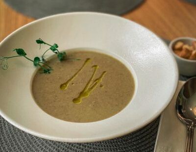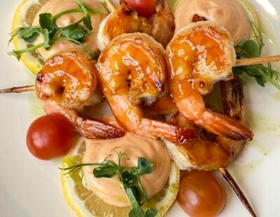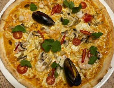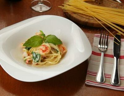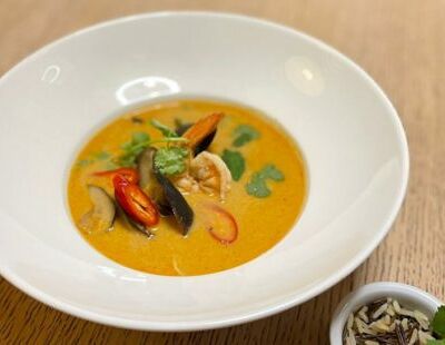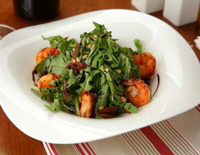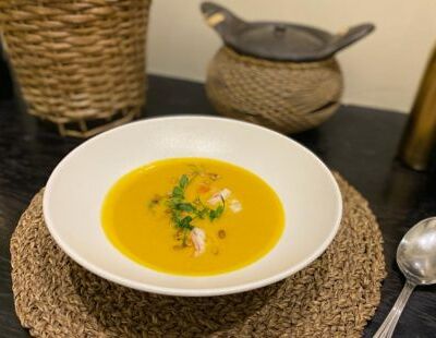 Тыквенный крем-суп с тигровыми креветками и обжаренными кедровыми орешками