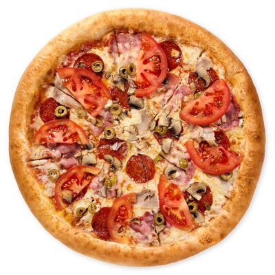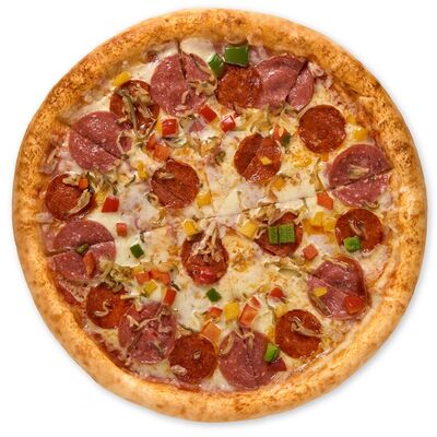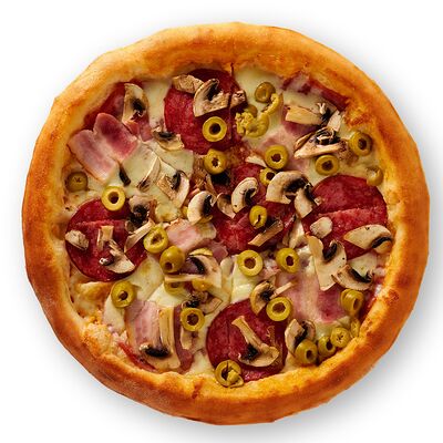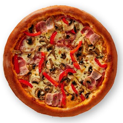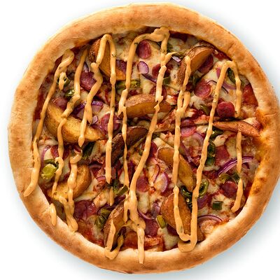 Пицца Мясное ассорти с беконом, бужениной, говядиной и салями (24 см), картофель фри мини, картофель по-деревенски мини, ролл Гейша, Трюфельный соус