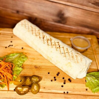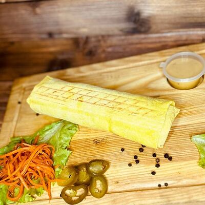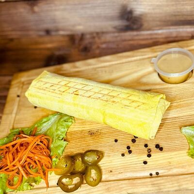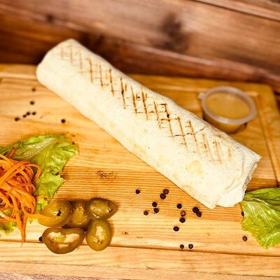 Лепёшка из тандыра, филе куриное, огурец маринованный, помидор, лук, белый соус