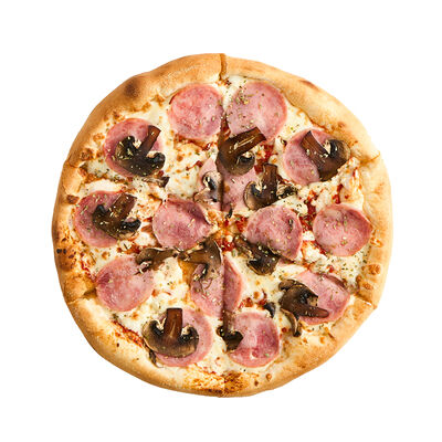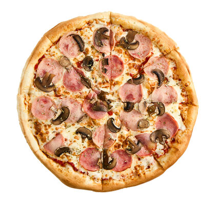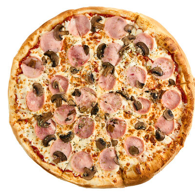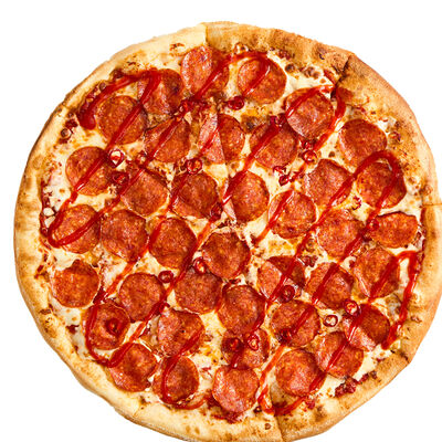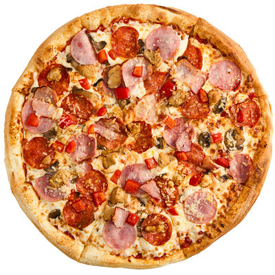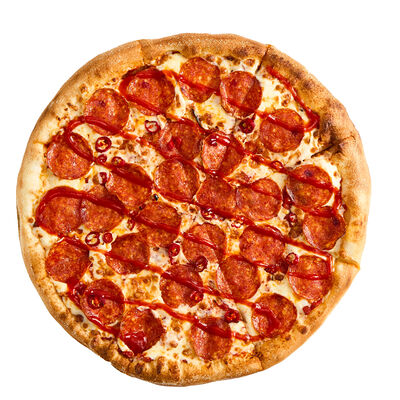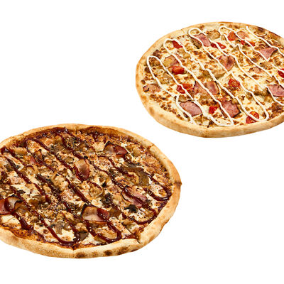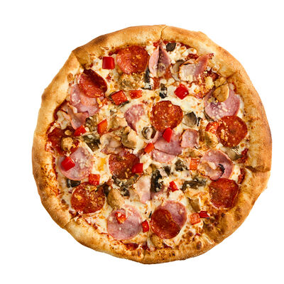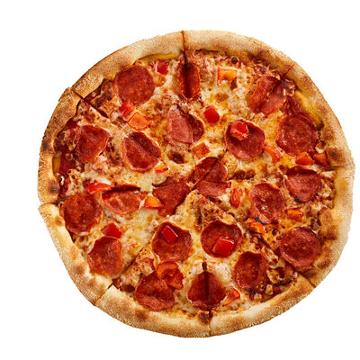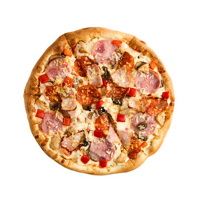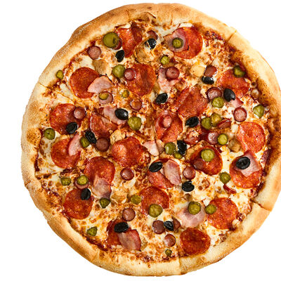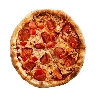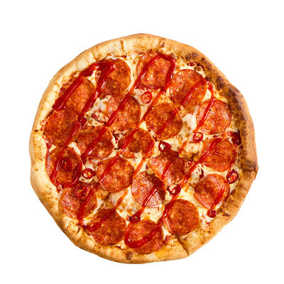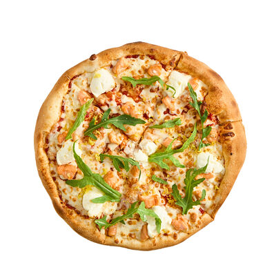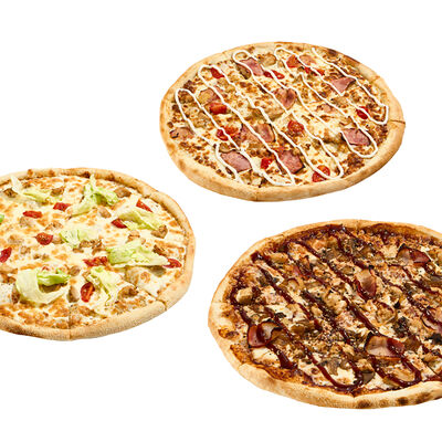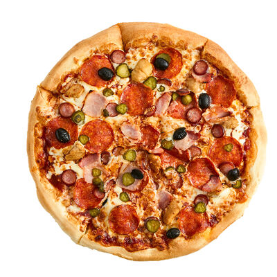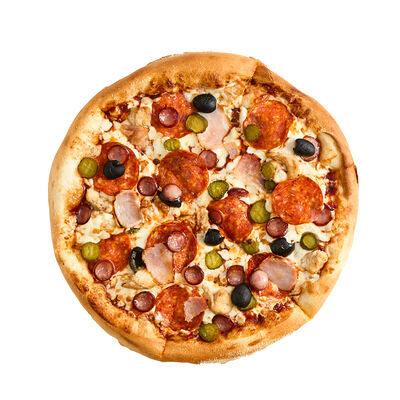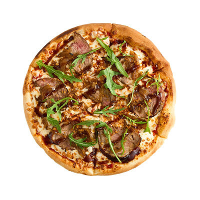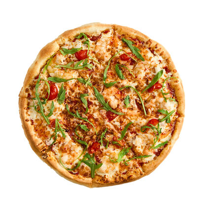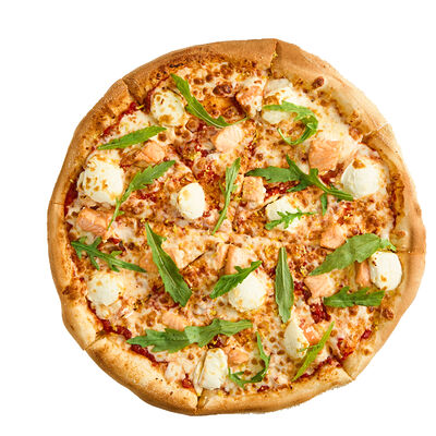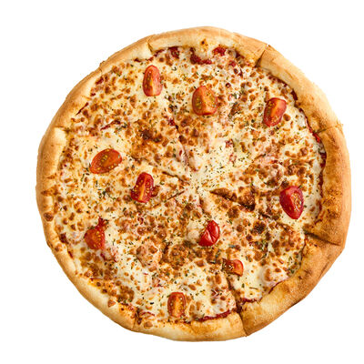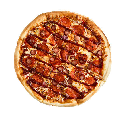 Курочка в соусе барбекю, сыр пармезан, томаты черри, салат айсберг и соус цезарь. 25 см