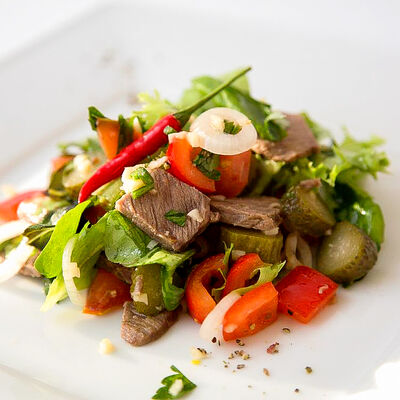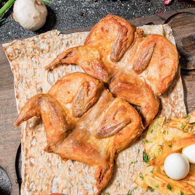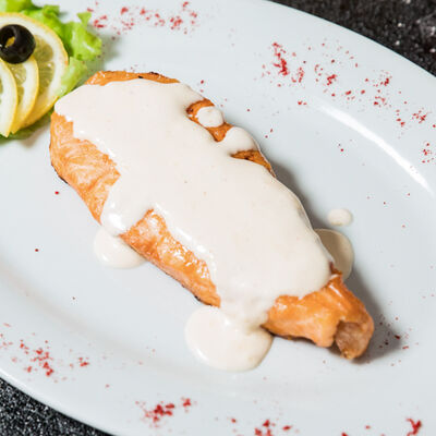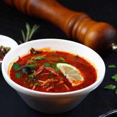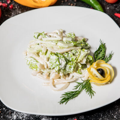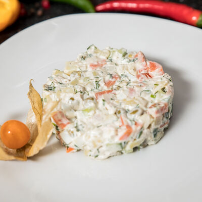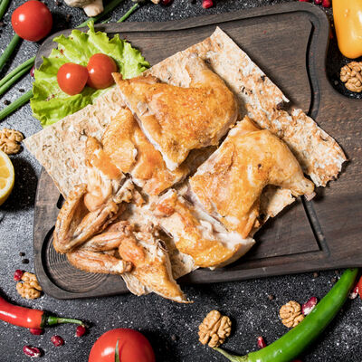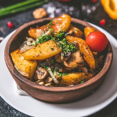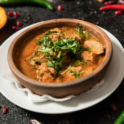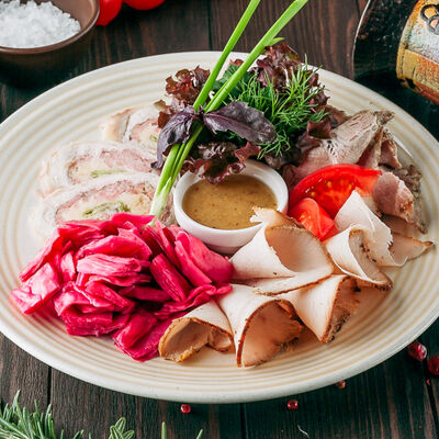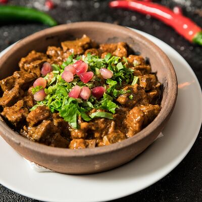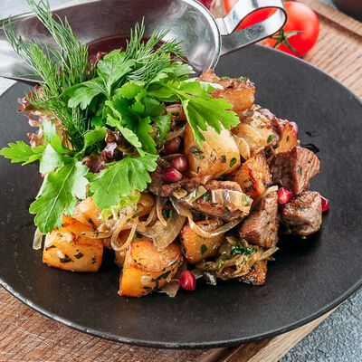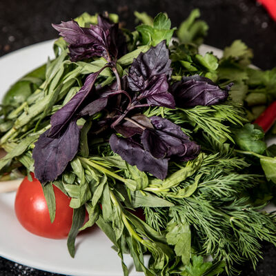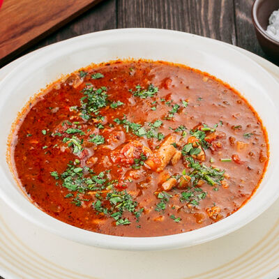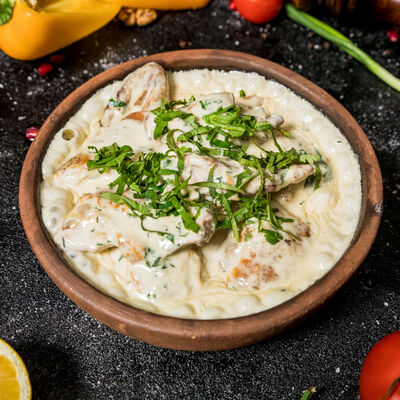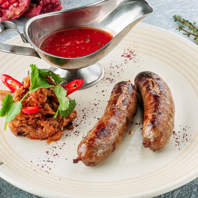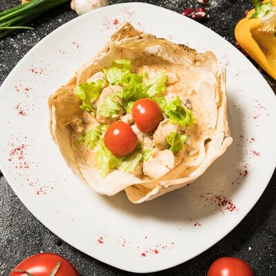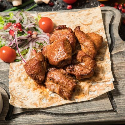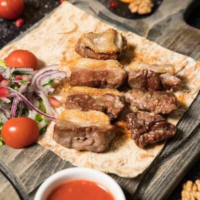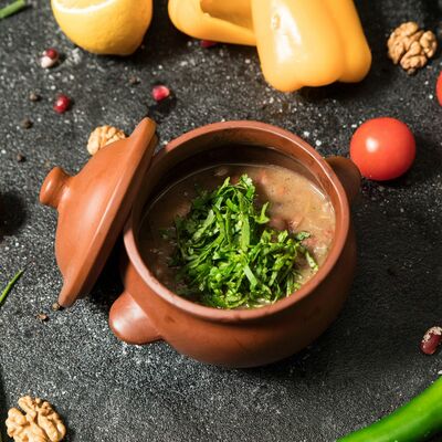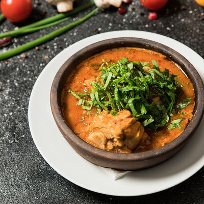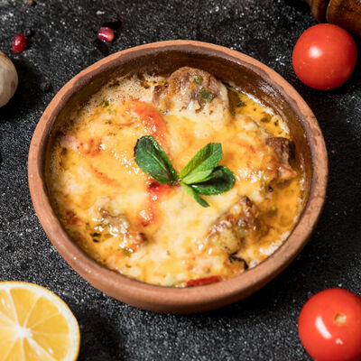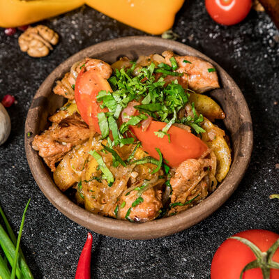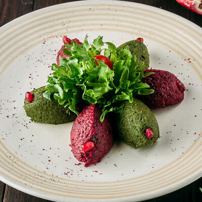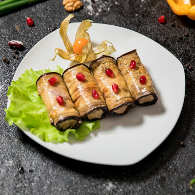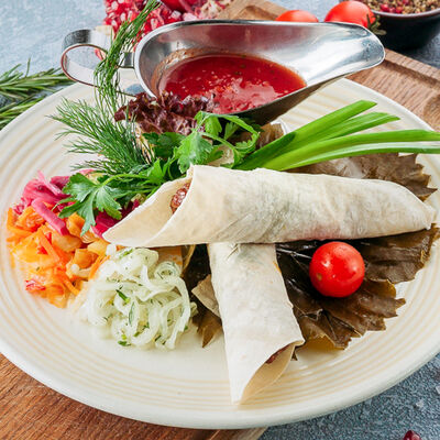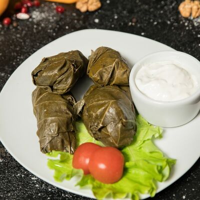 Начинка из рубленой свинины и говядины с пикантным репчатым луком, душистой зеленью и мягким рисом в пряных специях. Завернута в винoградные листья