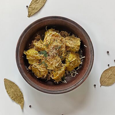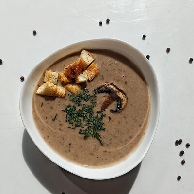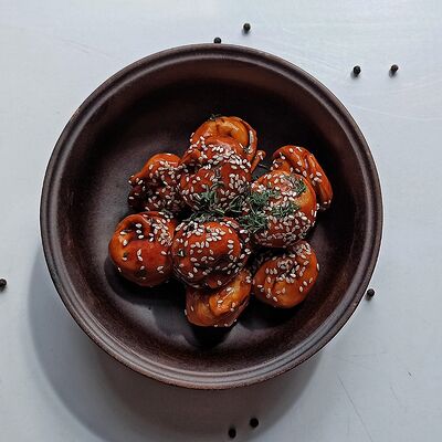 Шампиньон, бульон том ям, креветки, мидии, помидор, кальмар, лайм
