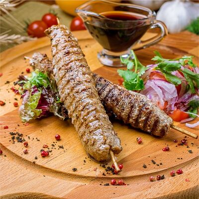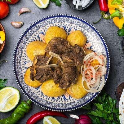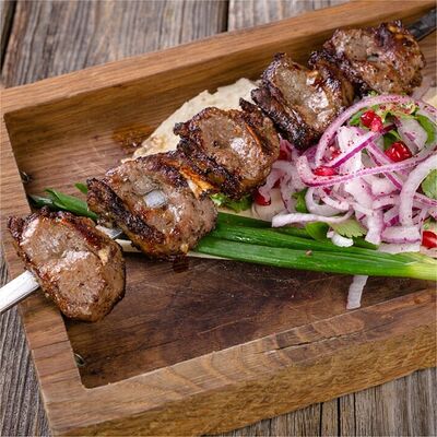 Баранина подается с луком и лавашом