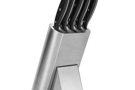 Искусство кулинарии требует особого отношения к каждому продукту и действию. Набор ERLING от компании FISSMAN разработан с учетом этого принципа. В состав входят 5 ножей различного назначения: • Поварской нож - им можно нарезать филе, нашинковать овощи, разделать мясо. Им также легко давить чеснок и другие специи, отбивать заготовки для стейков или разбивать панцирь крабов. • Хлебный нож - подходит для нарезки любых видов хлеба, кексов, тортов и т.д. Острый клинок можно использовать и для фруктов с жесткой кожурой: арбуза, ананаса или дыни. • Гастрономический нож – выбор знатоков. Он подойдет для нарезки любых продуктов на идеально тонкие кусочки благодаря длинному и узкому лезвию. Он пригодится и для приготовления блюд японской кухни – суши и сашими. • Универсальный нож - применяют для всех типов продуктов: рыбы, мяса, овощей и т.д. Варианты использования – нарезка, слайсирование, рубка, шинкование, измельчение и прочее. • Овощной. Им легко нарезать любые овощи, фрукты, корнеплоды, избавлять от кожуры.