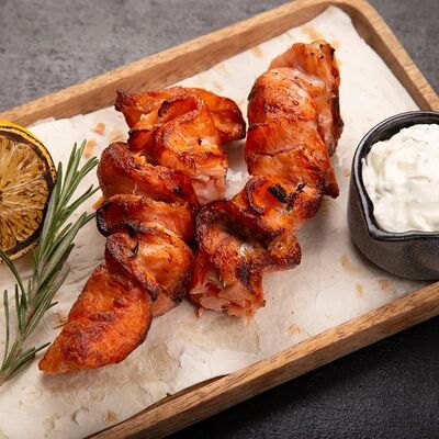 Синина шейка, лаваш сырный, лук репчатый, капуста, огурцы маринованные, помидоры, огурцы, два вида соуса