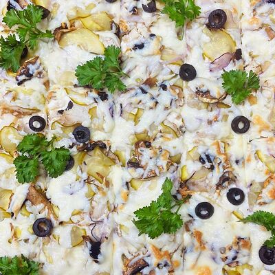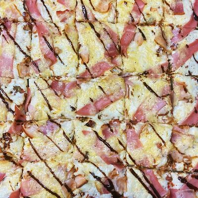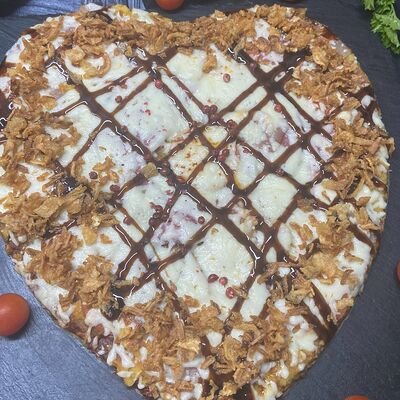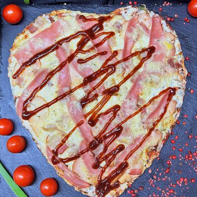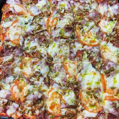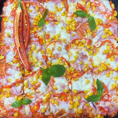 Куриные или свиные коржи (на выбор) щедро смазаны пикантным домашним соусом лечо. В наполнении полукопченые колбаски барбадос, слегка остренькие колбаски пепперони, нежная ветчина из индейки и сырокопченый бекон. Мега тянущийся сыр моцарелла дополняют яркий соус барбекю, красный сладкий перец, немного рубленой петрушки и красная сладкая ароматная паприка (28 см)