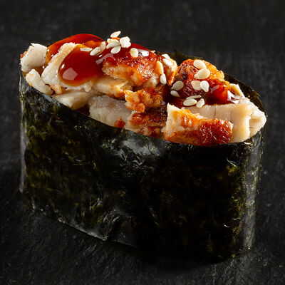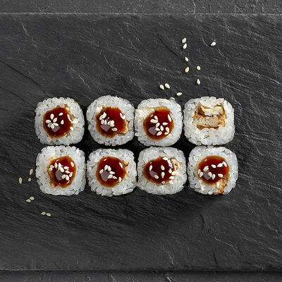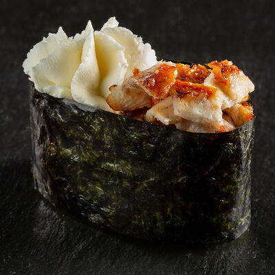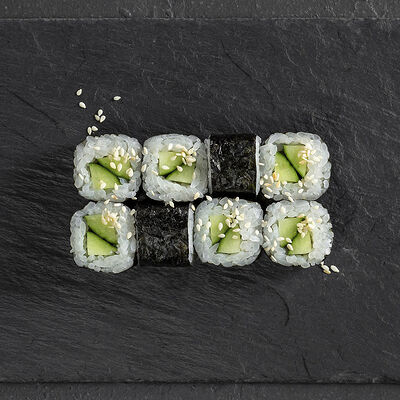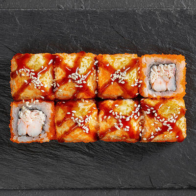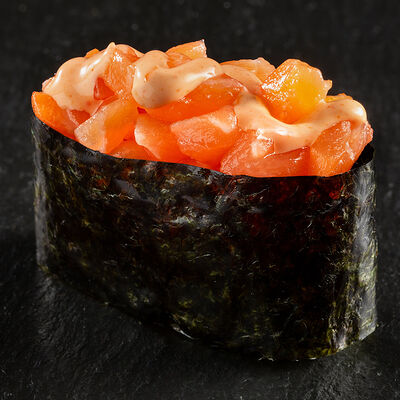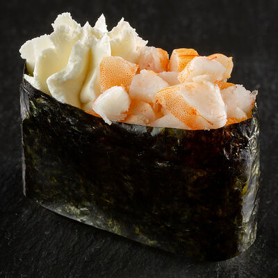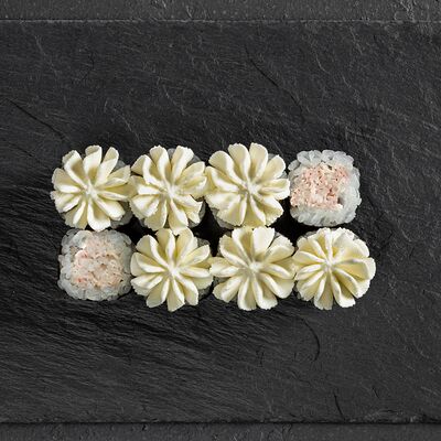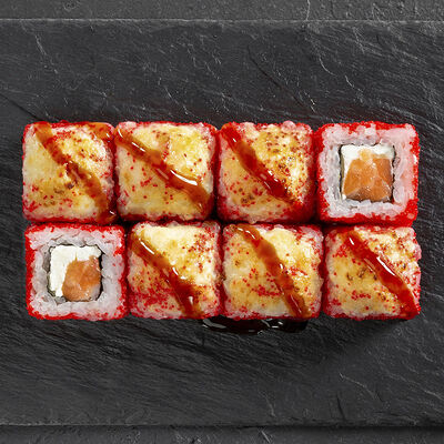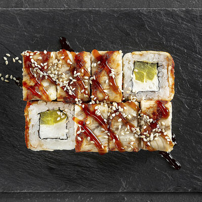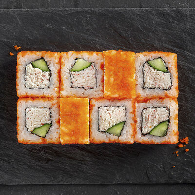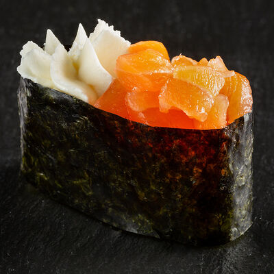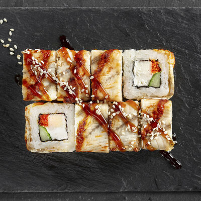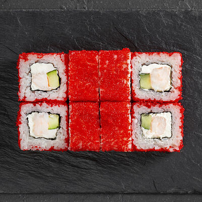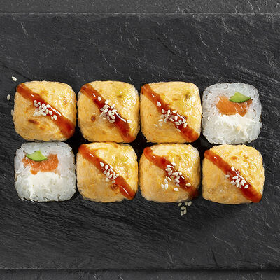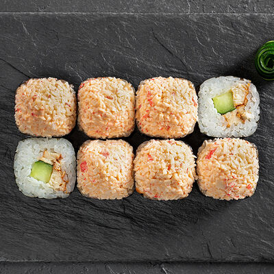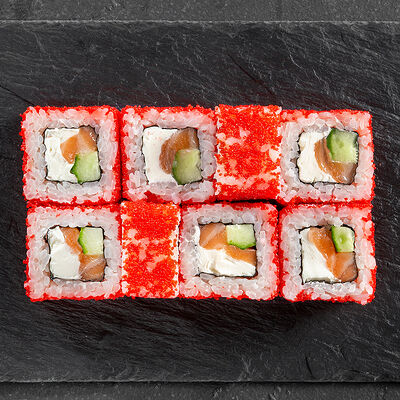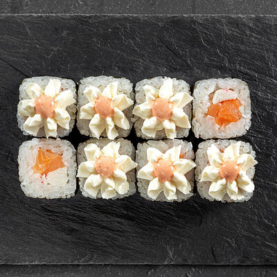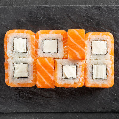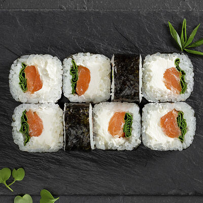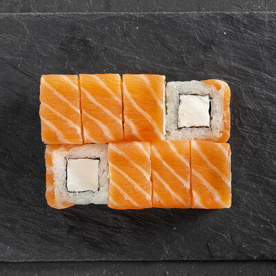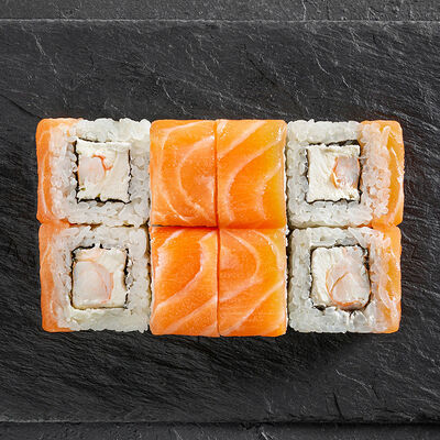 Рис, водоросли нори, сливочный сыр, тунец, лосось, огурец, стружка тунца