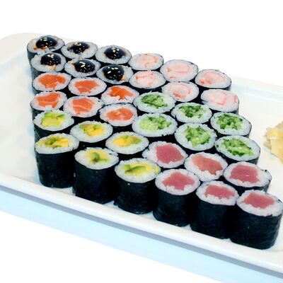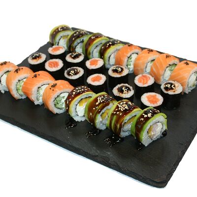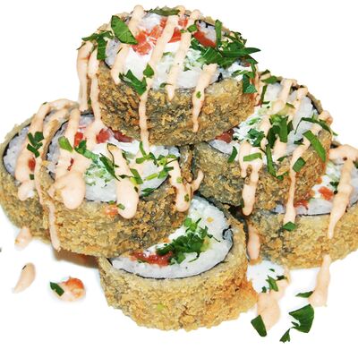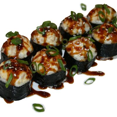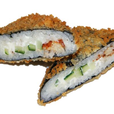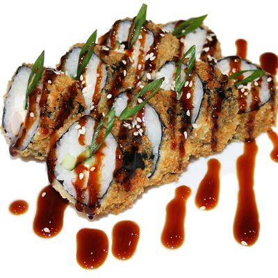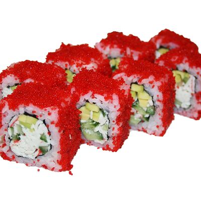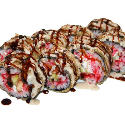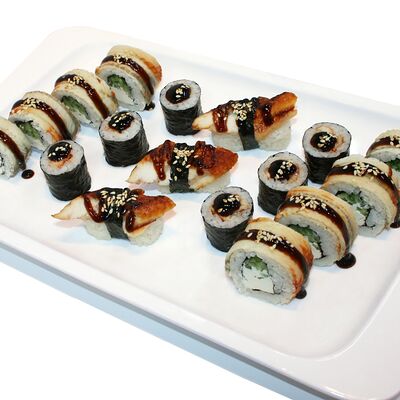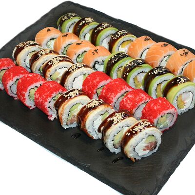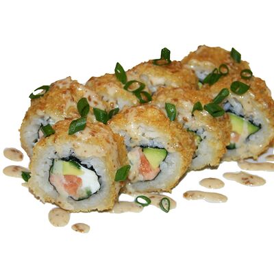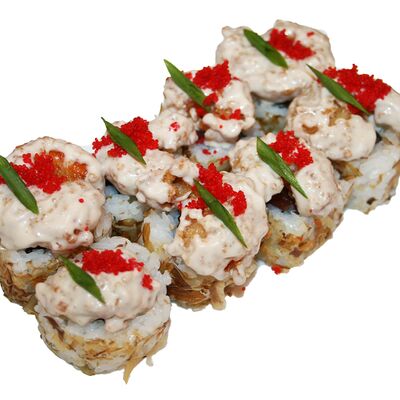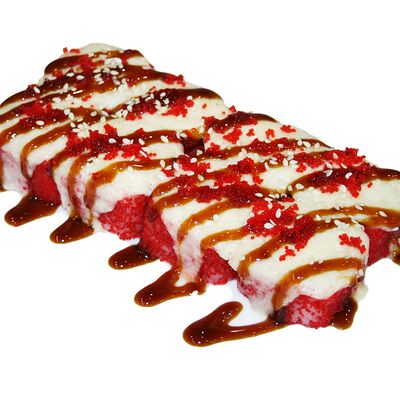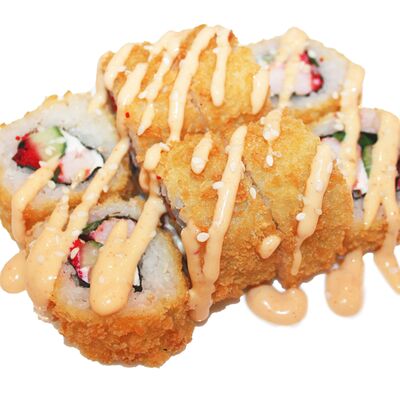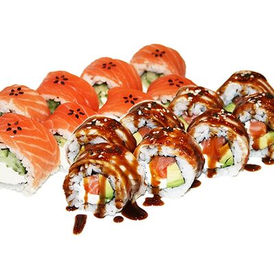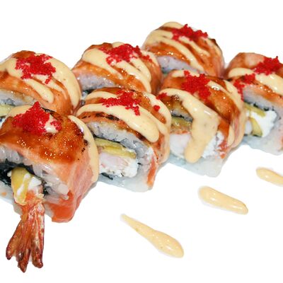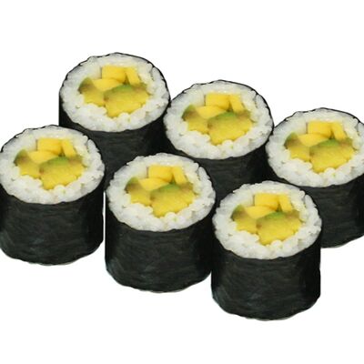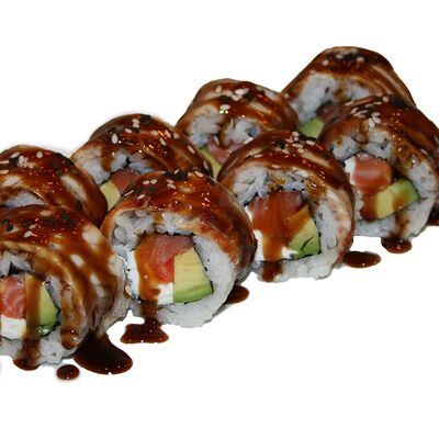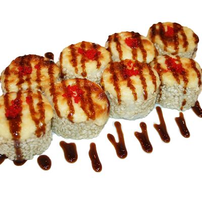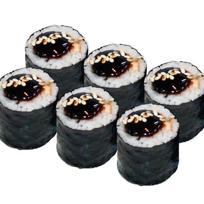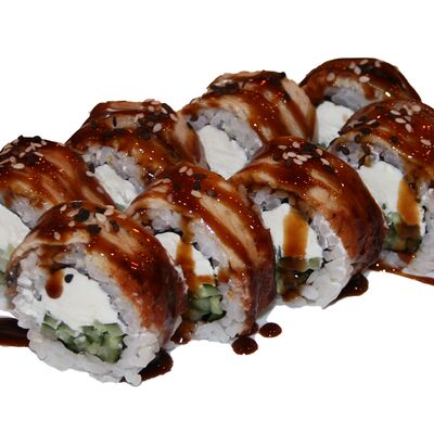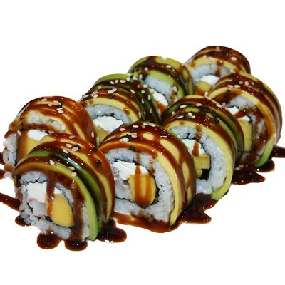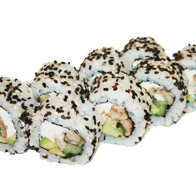 Нори, рис, сыр, креветки, манго, авокадо, соус унаги, кунжут