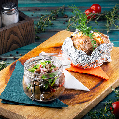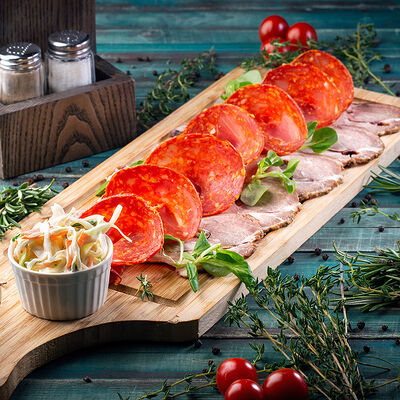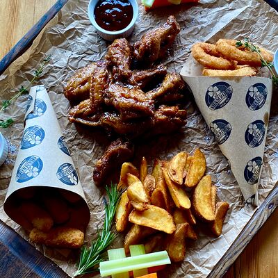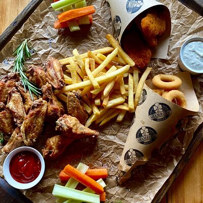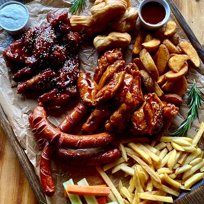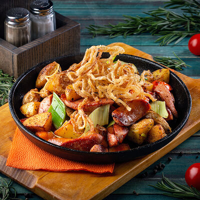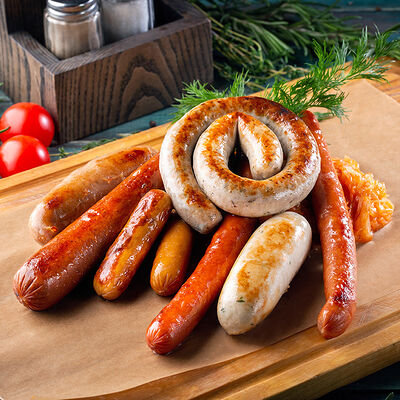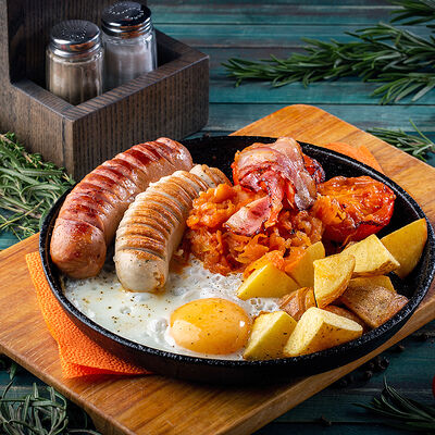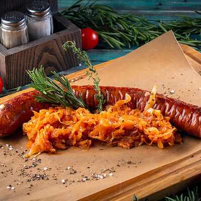Шесть видов колбасок, обжаренных на гриле, в сочетании с фирменной капустой Shamrock. Соус на выбор