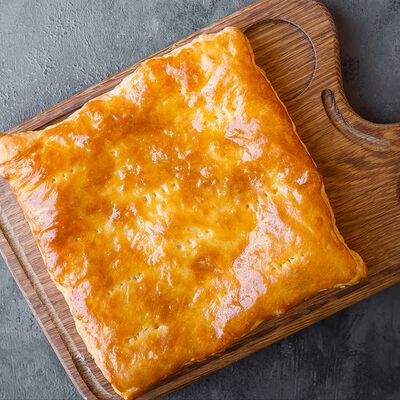 Слоеное тесто, сыр сулугуни. Выпекают квадратной формы, закрытым способом