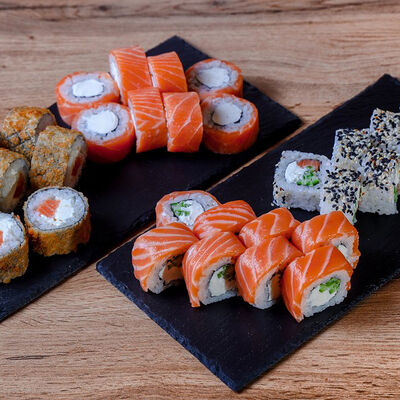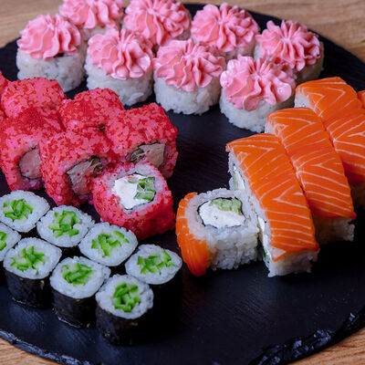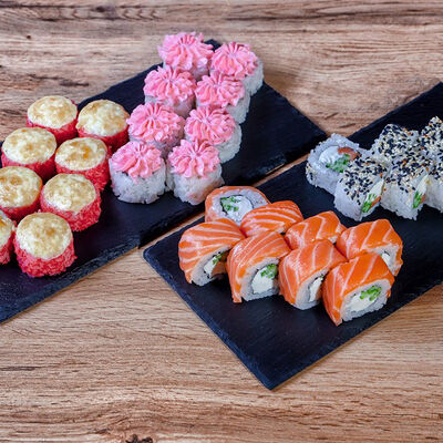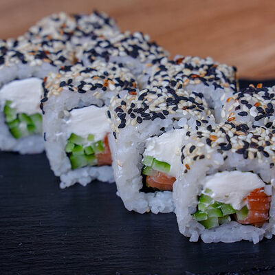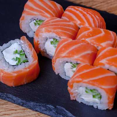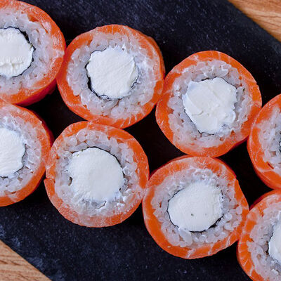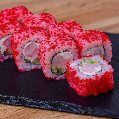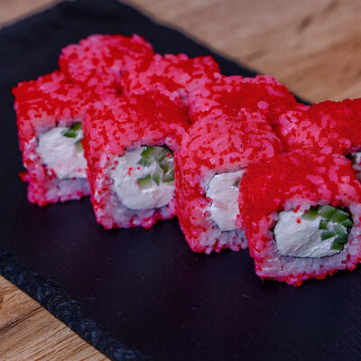 Икра масаго, лосось, сливочный сыр, соус нежный