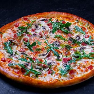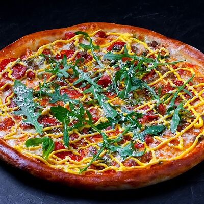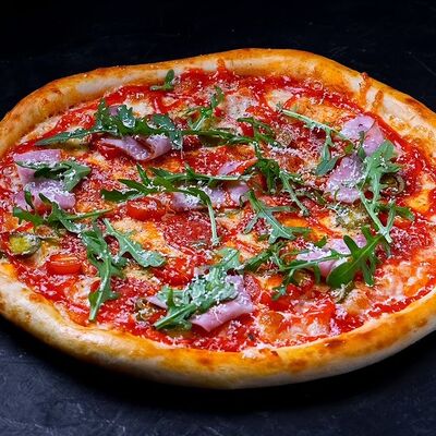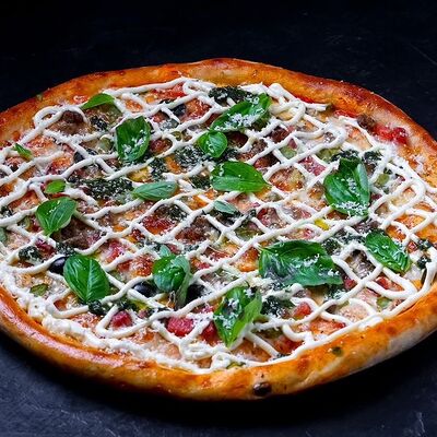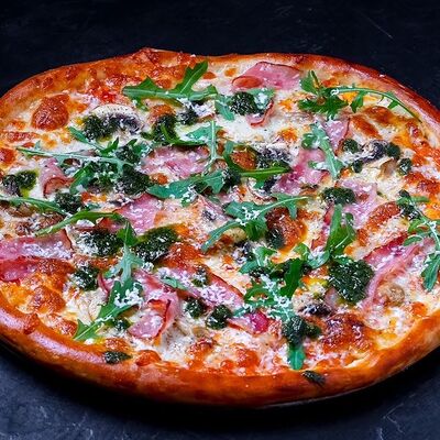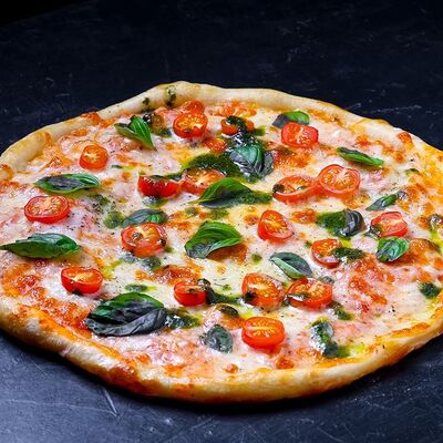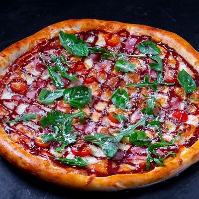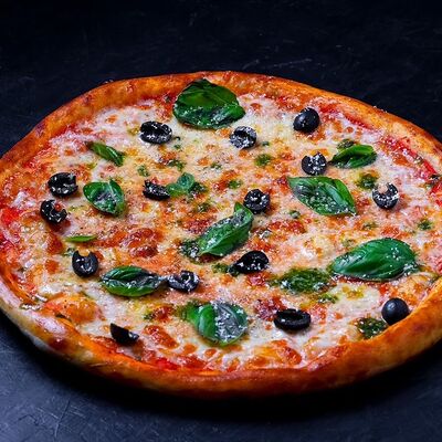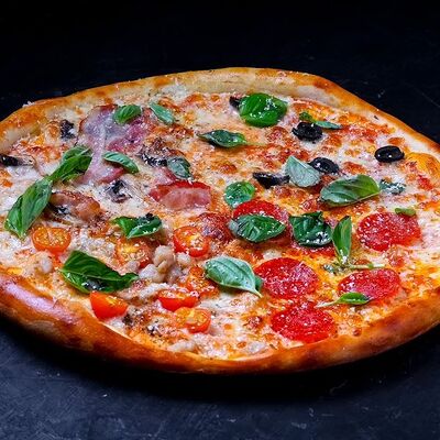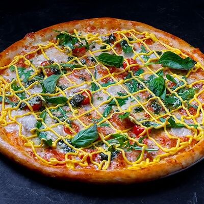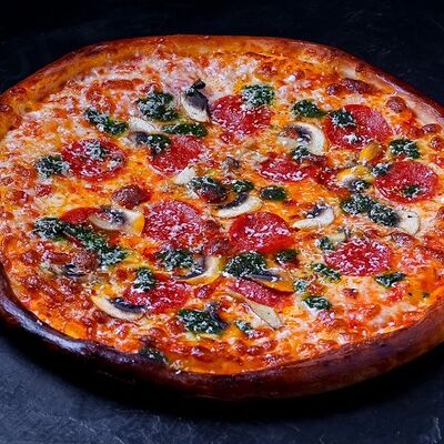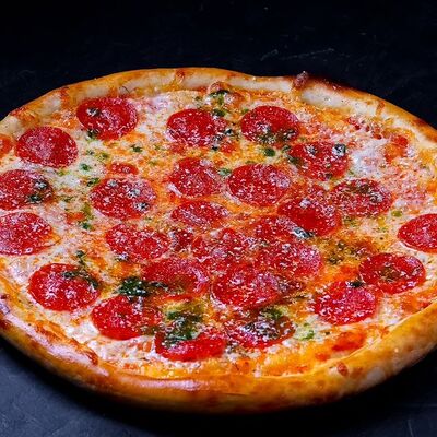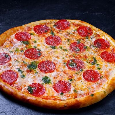 Сыр моцарелла, пепперони, фирменный соус, базилик, сыр пармезан (30 см)