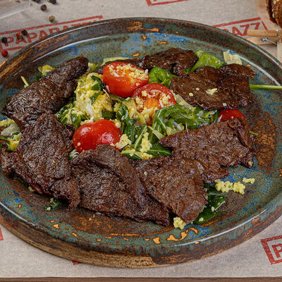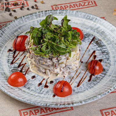 Салат с отварным говяжьим языком и грибами доставка