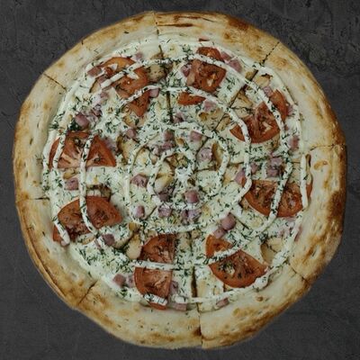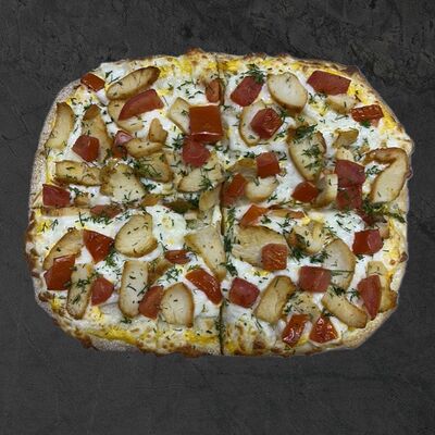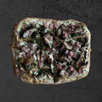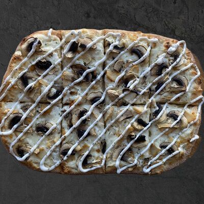 Шампиньоны, куриная грудка, белый соус, сыр моцарелла