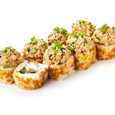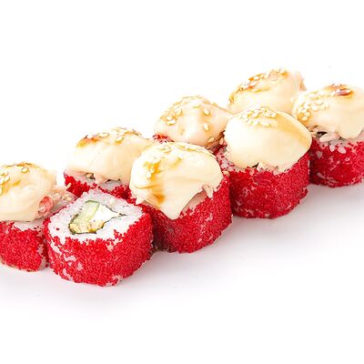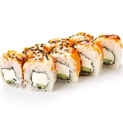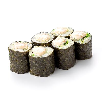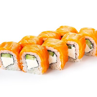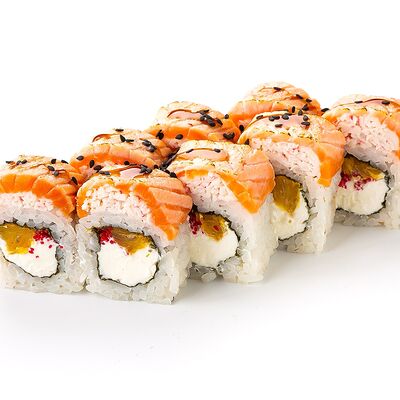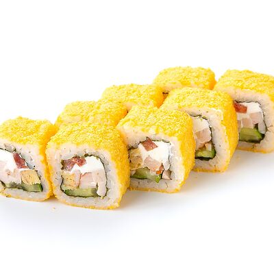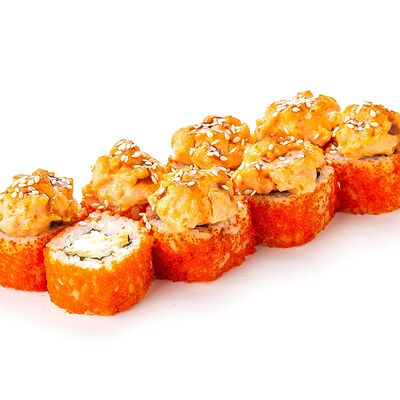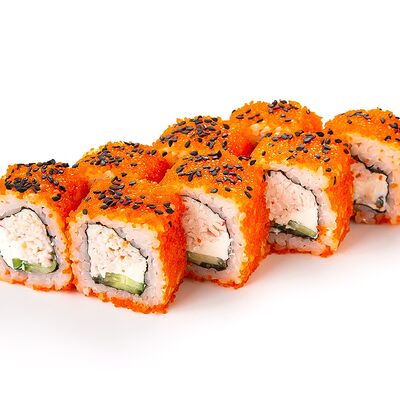 Рис shinaki, лист нори tidori, снежный краб vici, творожный сыр cremette, свежий огурец, икра tobikko, жареный кунжут