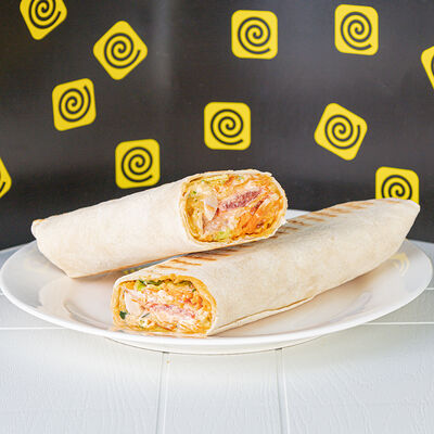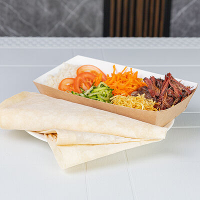Лаваш, курица, говядина, свежий огурец, маринованная морковь, картофель пай