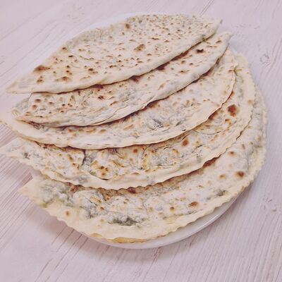 Петрушка, укроп, кинза, мята, щавель, зелёный лук, шпинат, соль, тесто