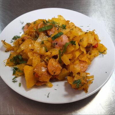 Капуста, зелёный лук, морковь, специи, масло