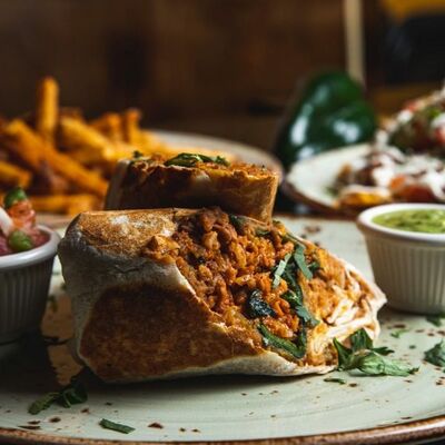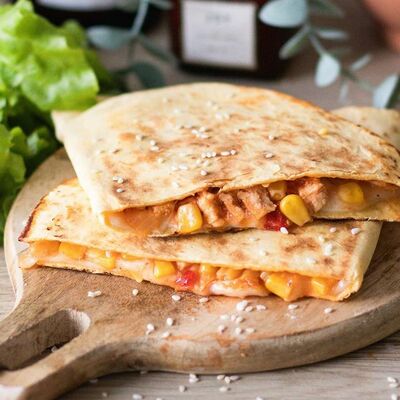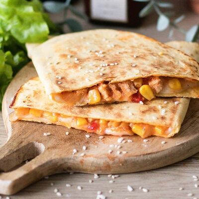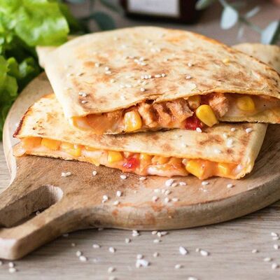 Отборная говядина в фирменном соусе, кукуруза, сыр чеддер, помидоры, сыр гауда, специи
