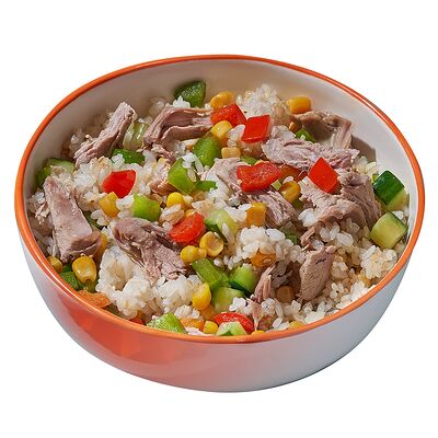 Рис отварной, яйцо, кукуруза консервированная, огурцы свежие, лук зеленый, лук репчатый