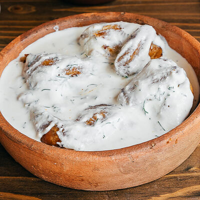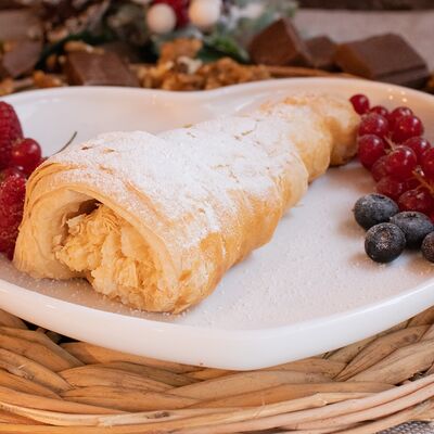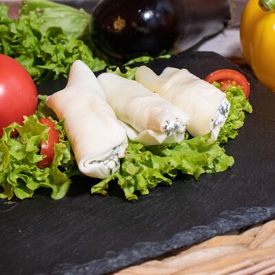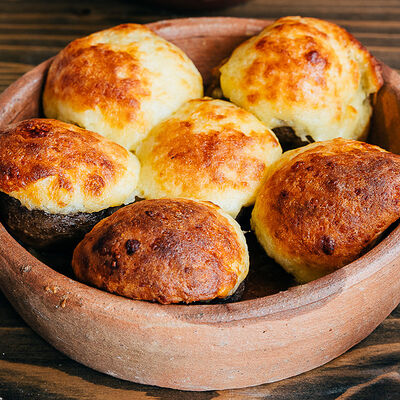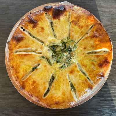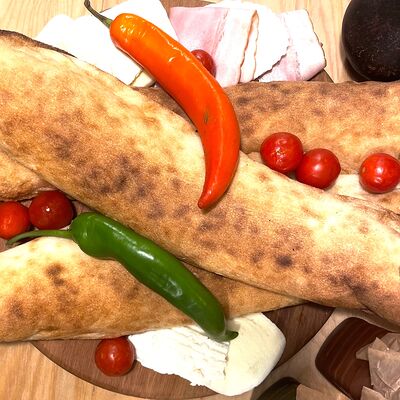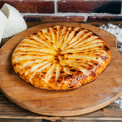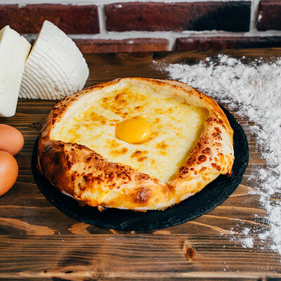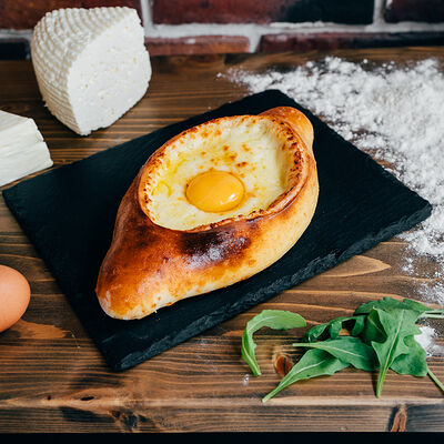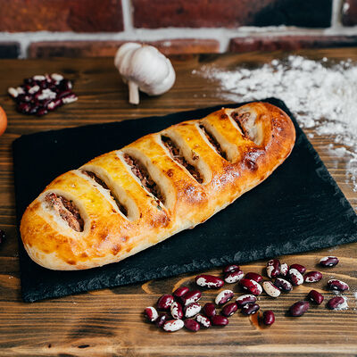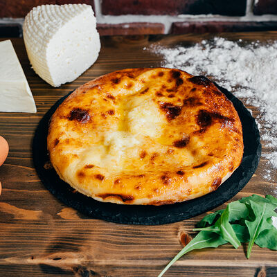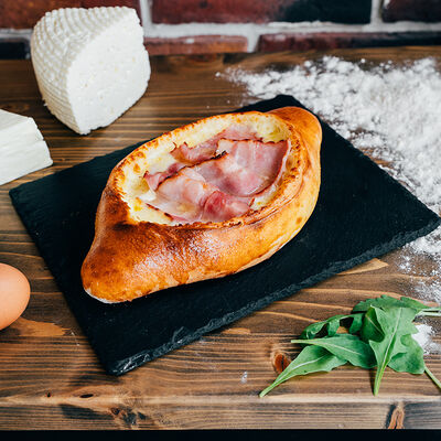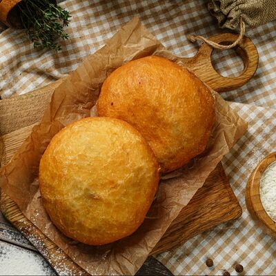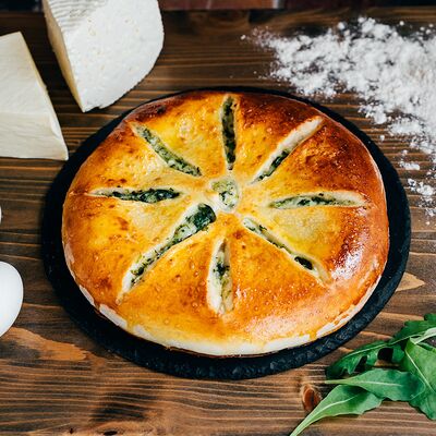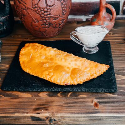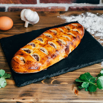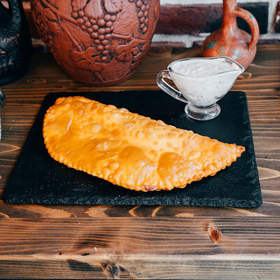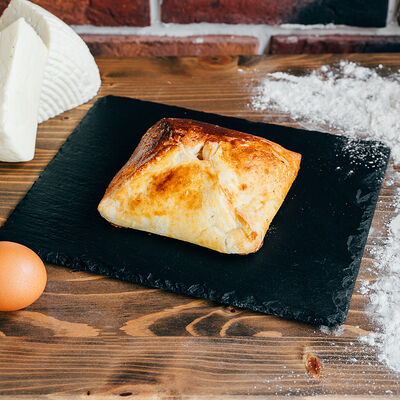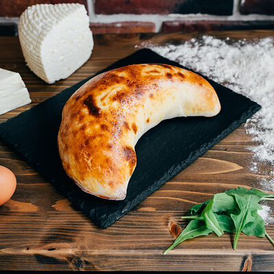 Закрытый пирог в виде полумесяца с рубленым яйцом и сыром