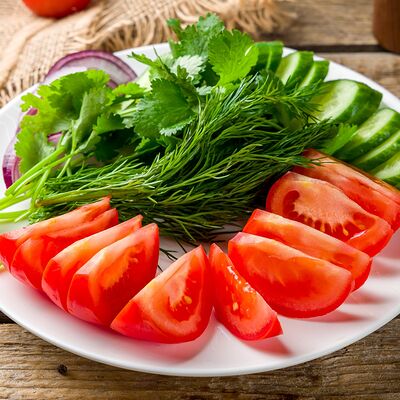 Помидоры, огурцы, зелень
