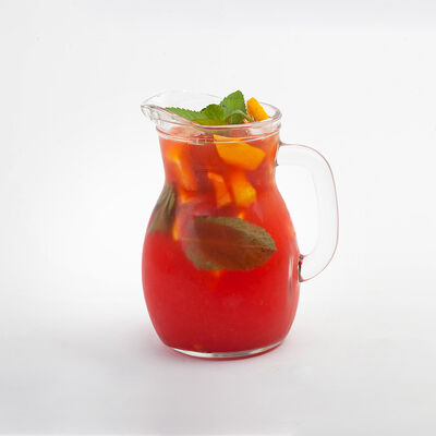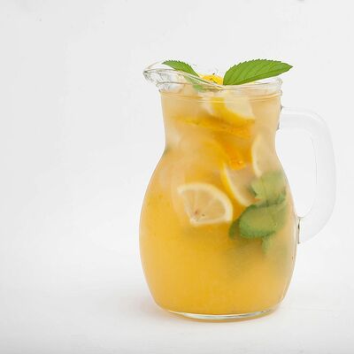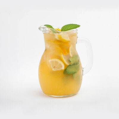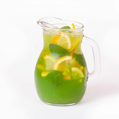 Лимонный и апельсиновый свежевыжатый сок, фрукты, содовая, сироп, лед. Собственного производства