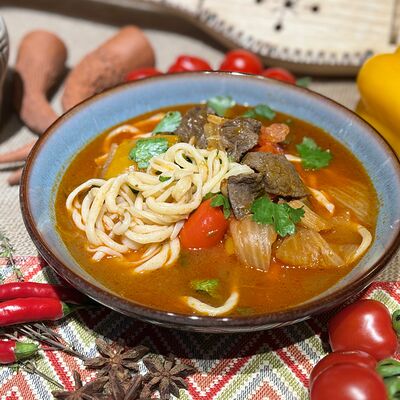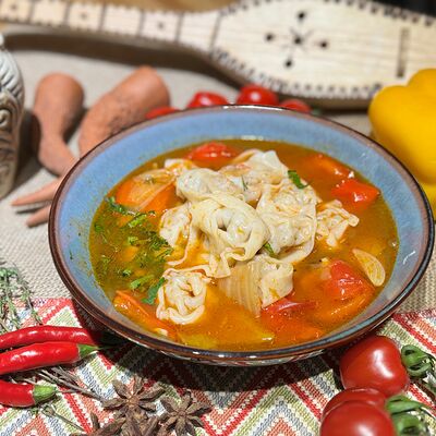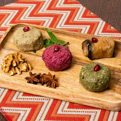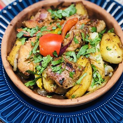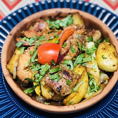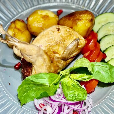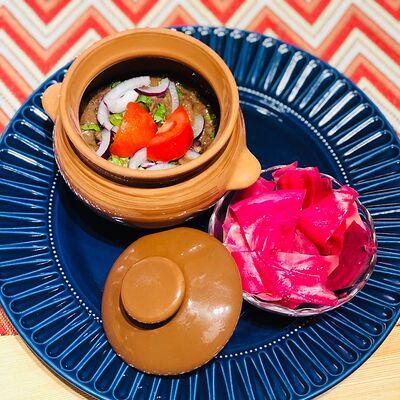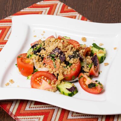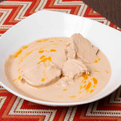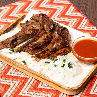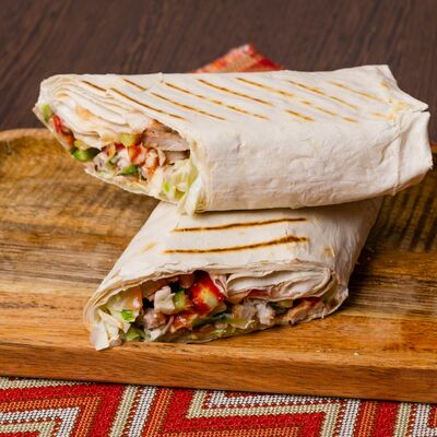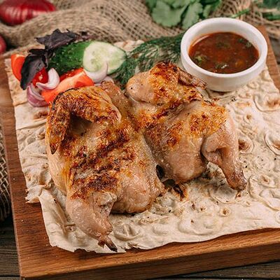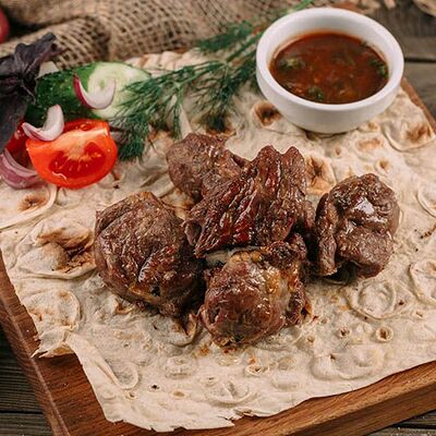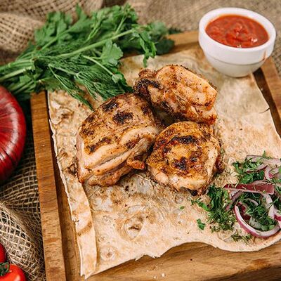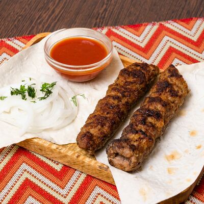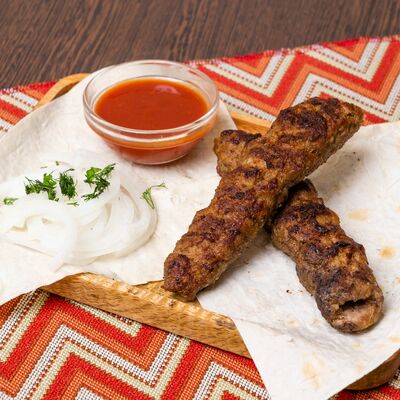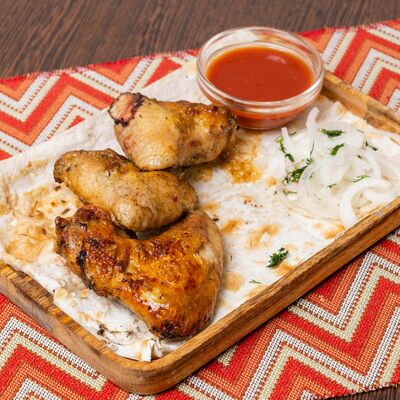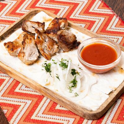 Рубленая курица, лук красный, лаваш, соус сацебели