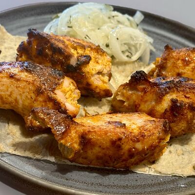 Куриная грудка. Дополнительно лаваш, соус, лук