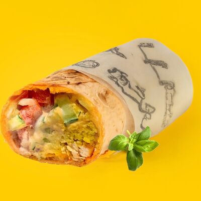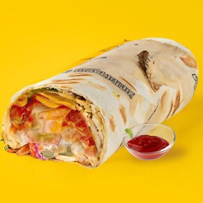 Лаваш сырный, мясо куриное готовое, помидоры, огурцы свежие, кускус, соус карри, соус шаверма