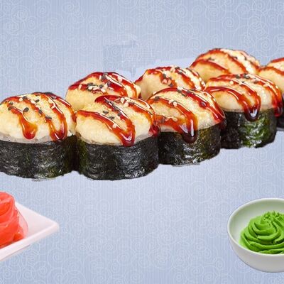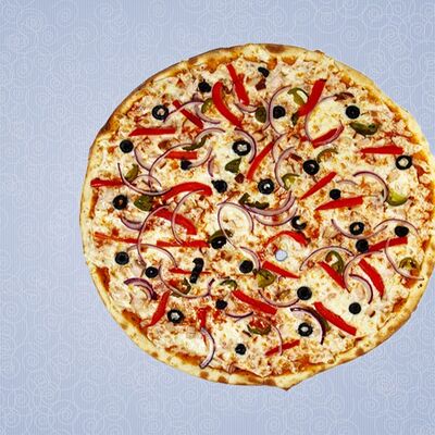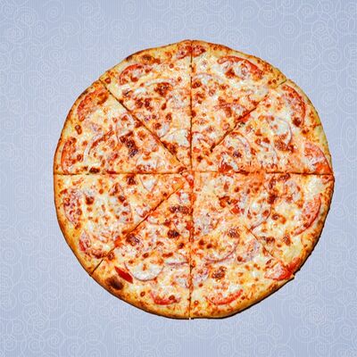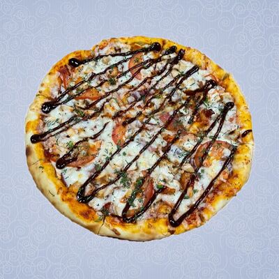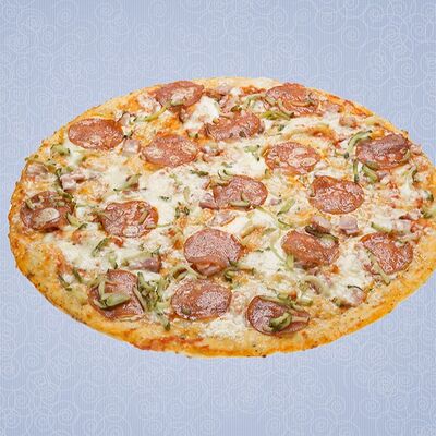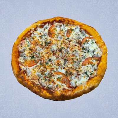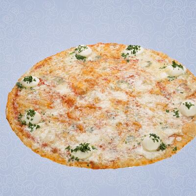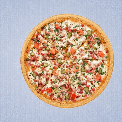 Соус для пиццы, сыр моцарелла, сыр чеддер, сыр пармезан, зелень, сливочный сыр