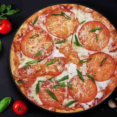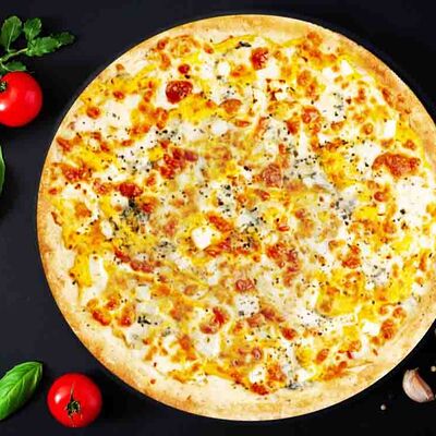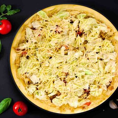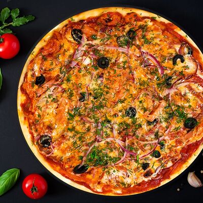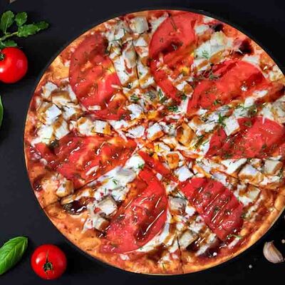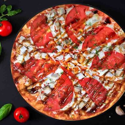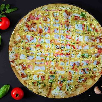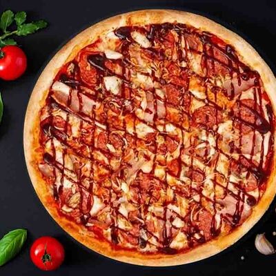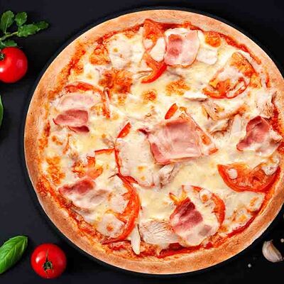 Фирменная пицца с беконом, куриной грудкой и томатами под красным соусом (33 см)