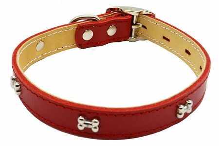 Ошейник для собак КАСКАД Косточка кожаный двухслойный шир.15мм обх.шеи 24-30см красный доставка