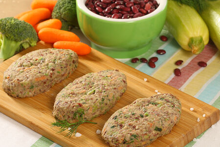 Овощные котлеты из двух видов фасоли и капусты — красной и стручковой, цветной и брокколи — с добавлением кабачков, морковки и зелени. Кладезь витаминов и яркий представитель в линейке овощных котлеток! В качестве «связки», которая помогает котлетам держать форму, используются кукурузный крахмал и пшеничная мука.