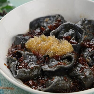 Мука, вода, яйцо, бедро индейки, лук репчатый, соль, перец, свекольный сок